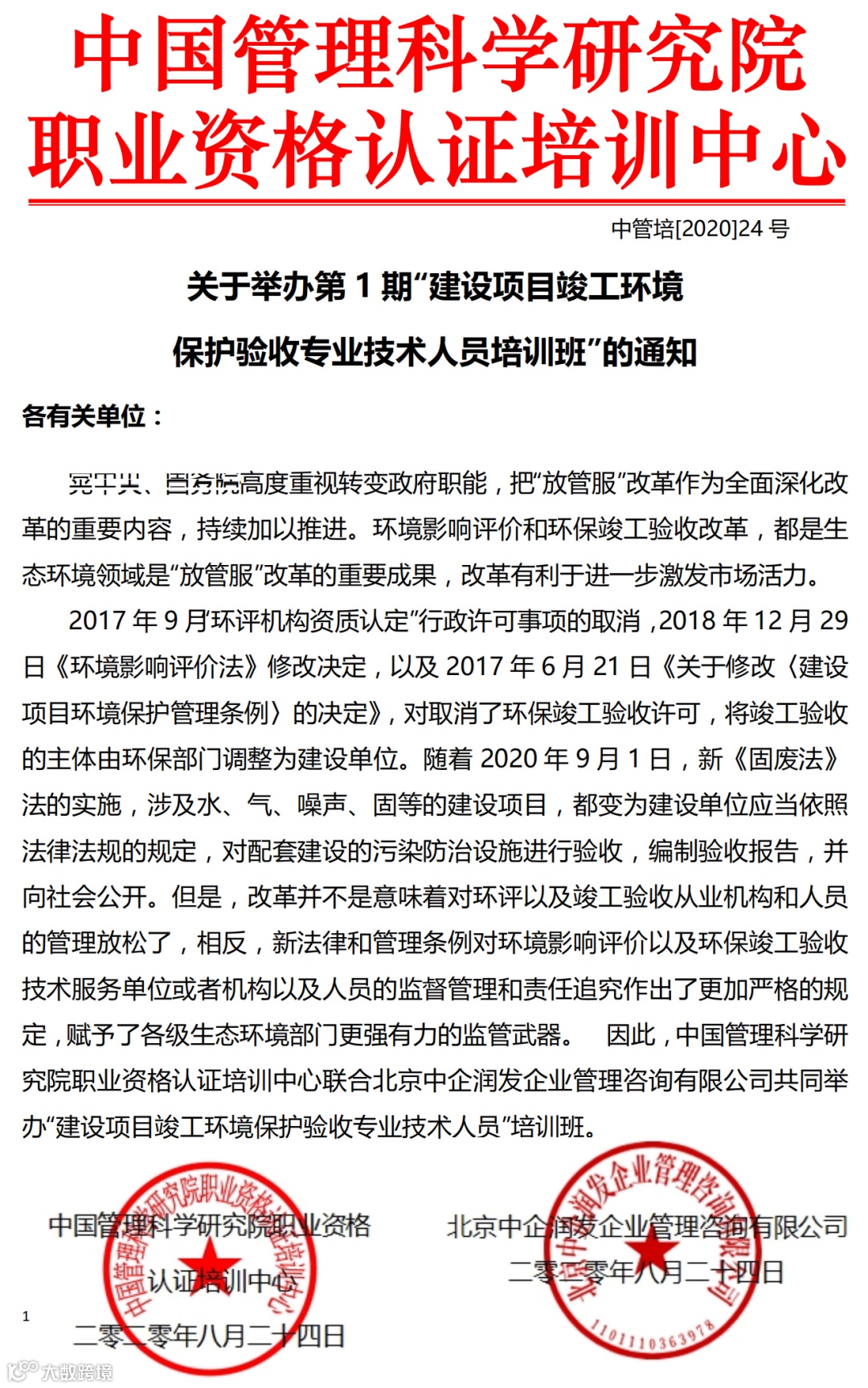 附红头文件4:“建设项目竣工环境保护验收专业技术人员培训班”的通知