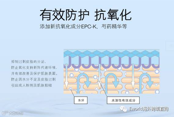 令肌肤柔软,水润的化妆水,持久使用可以预防肌肤干燥、成人粉刺的问题。令肌肤纹理饱满、真正的让肌肤达到水油平横。即时补水能力优秀,水分深层渗透肌肤底层,令肌肤立刻摆脱干燥的状态,同时促进肌肤新陈代谢,解决因肌肤干燥和成人暗疮等造成的粗糙肤质,让肌肤回复柔滑水凝;