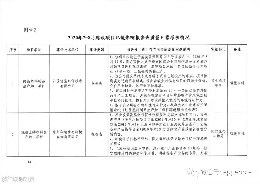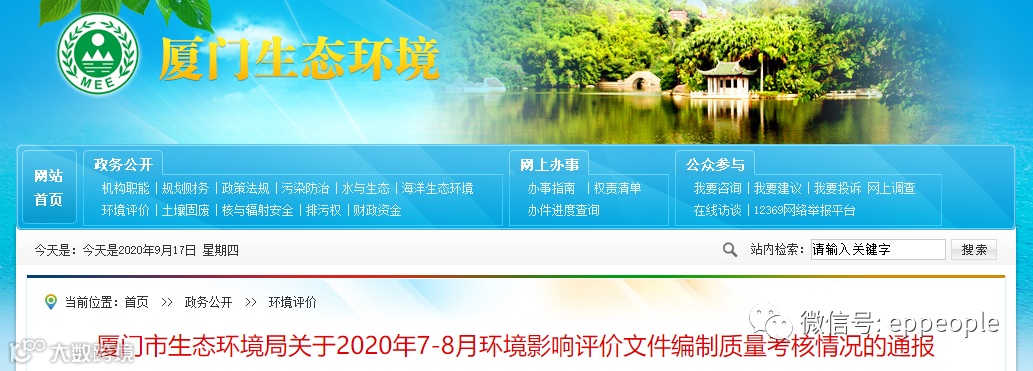 厦门市生态环境局关于2020年7-8月环境影响评价文件编制质量考核情况的通报