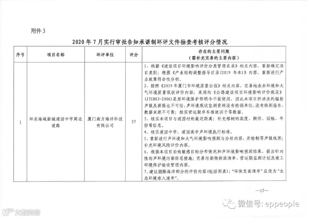 二、我局还组织了对2020年7月实行审批告知承诺制的40本环评文件进行抽查考核,有关考核结果见附件3,请各相关单位根据考核意见对环评文件进行完善,并指导建设单位依法落实环境保护主体责任。