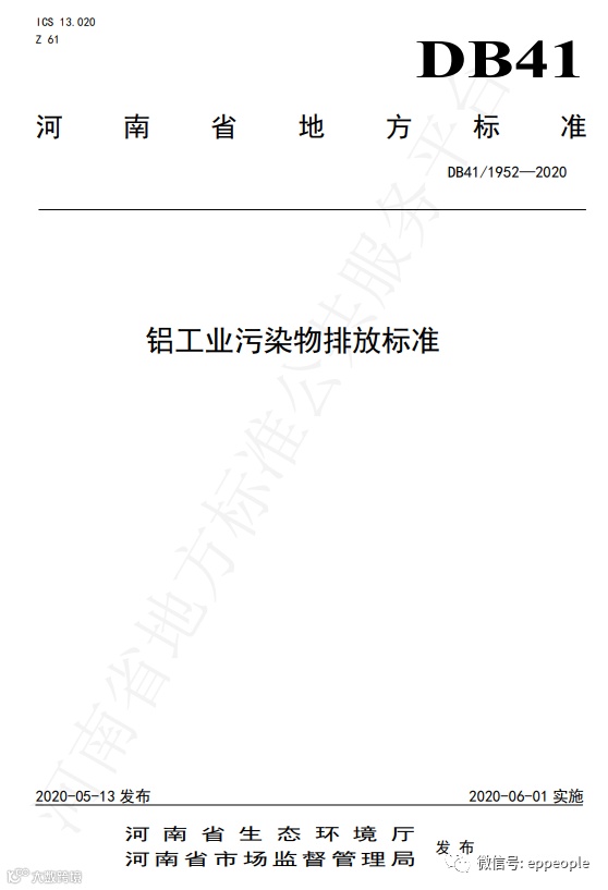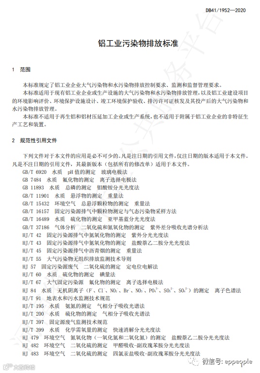 铝工业污染物排放标准(DB41 1952-2020)