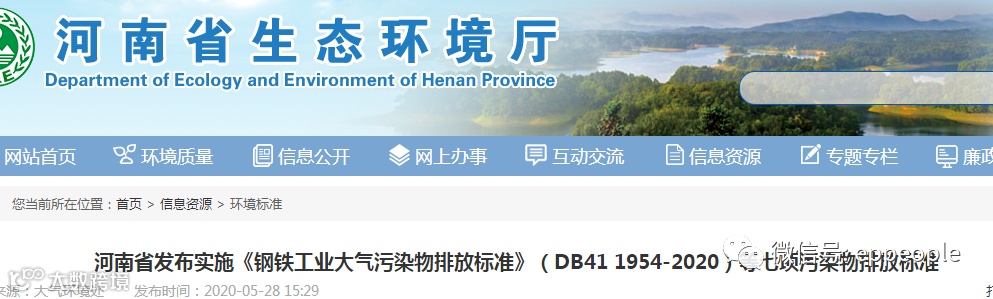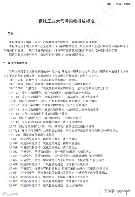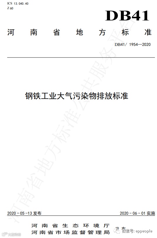 钢铁工业大气污染物排放标准(DB41 1954-2020)