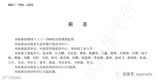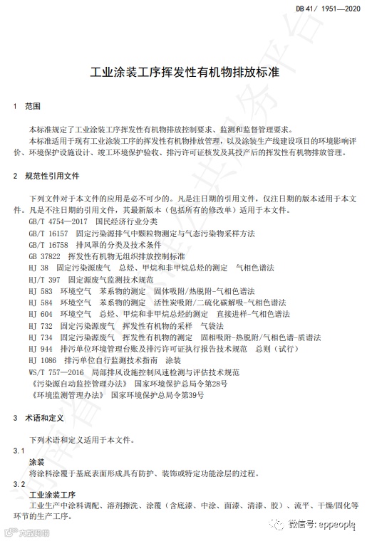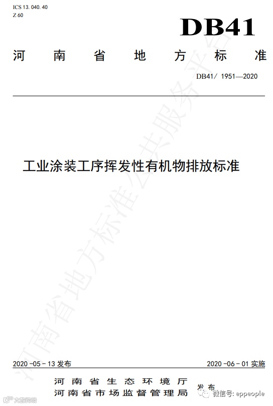 工业涂装工序挥发性有机物排放标准(DB41 1951-2020)