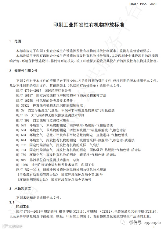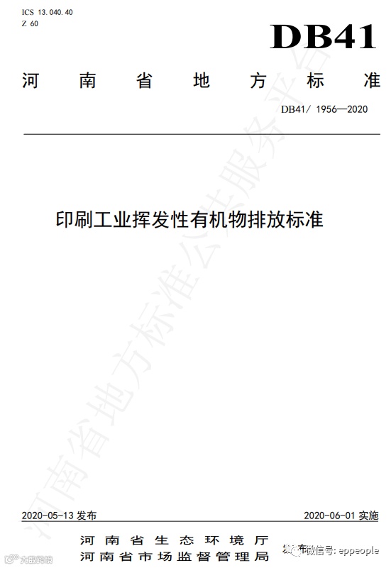 印刷工业挥发性有机物排放标准(DB41 1956-2020)
