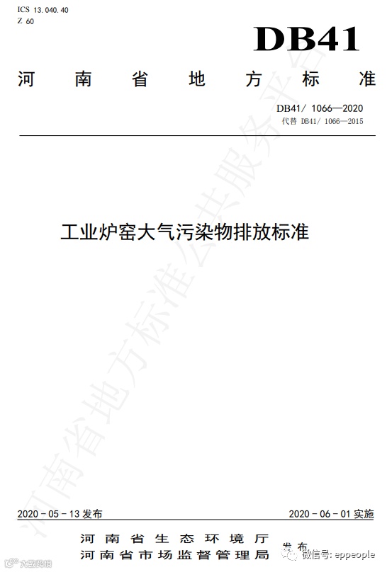 河南:工业炉窑大气污染物排放标准(DB41 1066-2020)等七项污染物排放标准发布,6月1日起实施