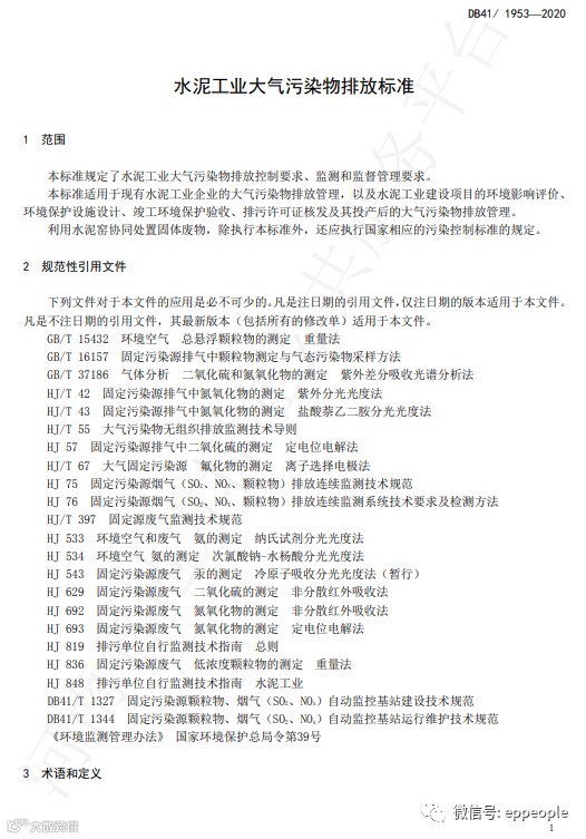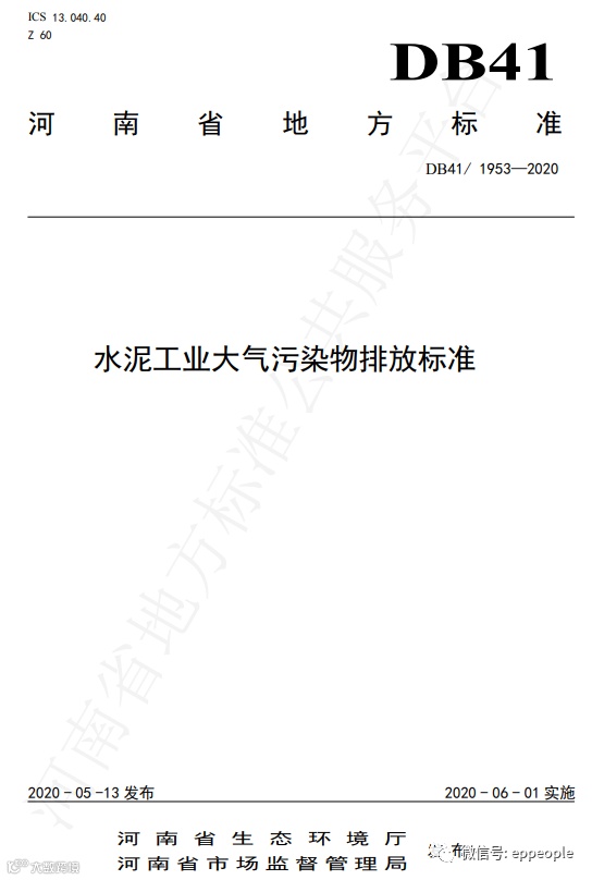 水泥工业大气污染物排放标准(DB41 1953-2020)