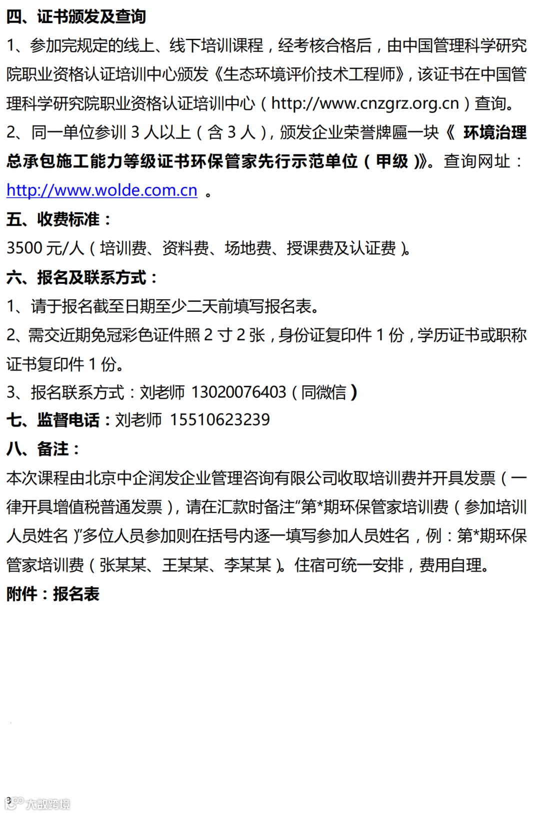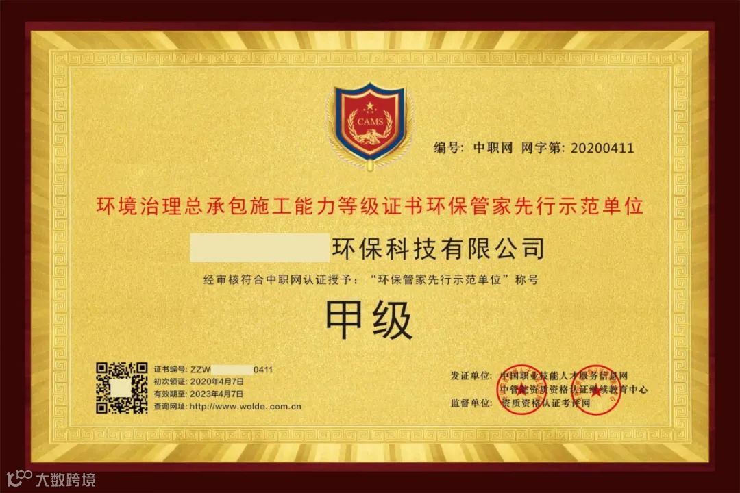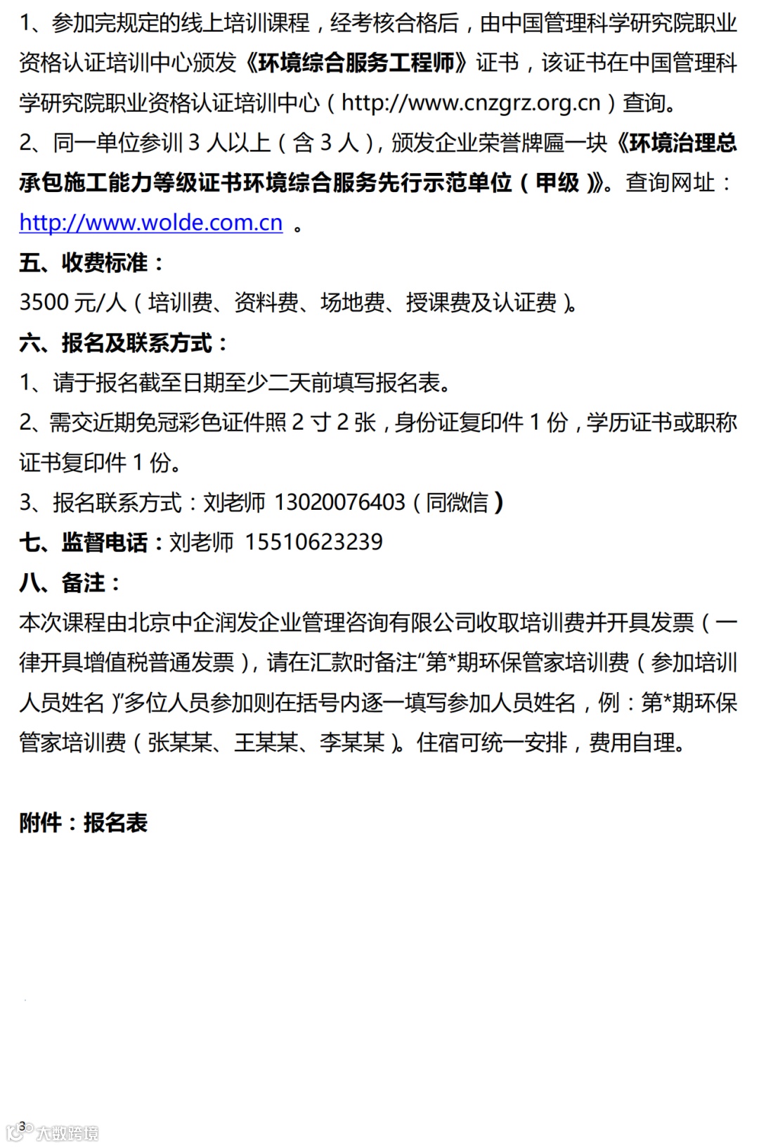 2、同一单位参训3人以上(含3人),颁发企业荣誉牌匾一块《环境治理总承包施工能力等级证书环保管家先行示范单位(甲级)》。查询网址:http://www.wolde.com.cn 。
