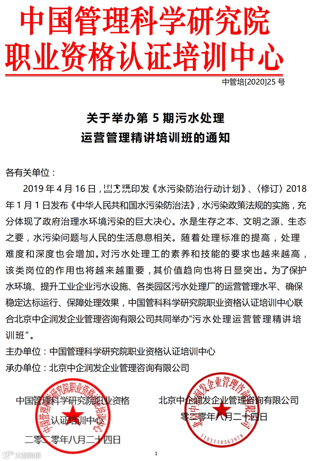 附红头文件5:污水处理运营管理精讲培训班的通知