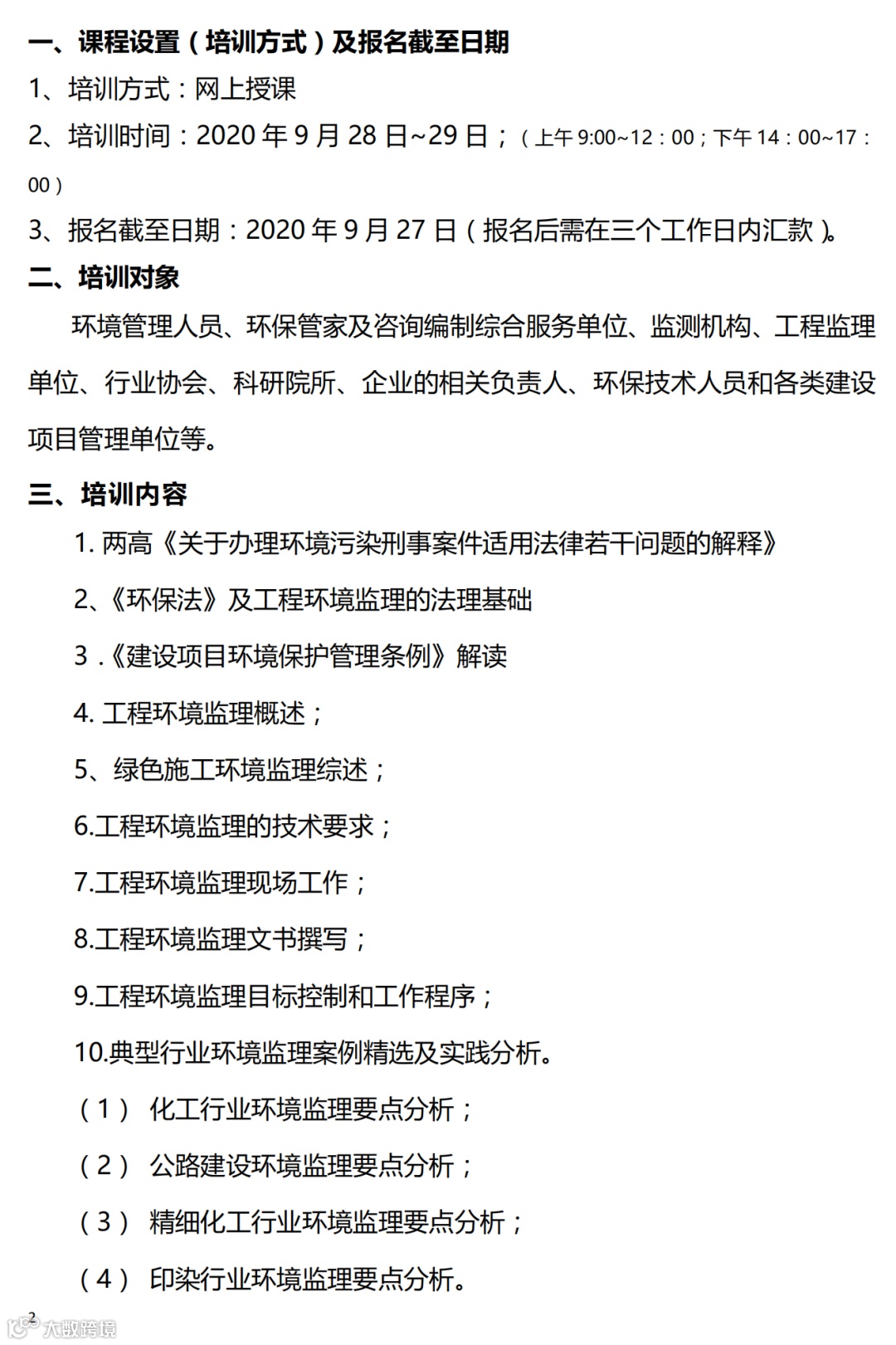 附红头文件2:排污许可”一证式“管理专业化人才培训暨环境管理工程师培训班的通知