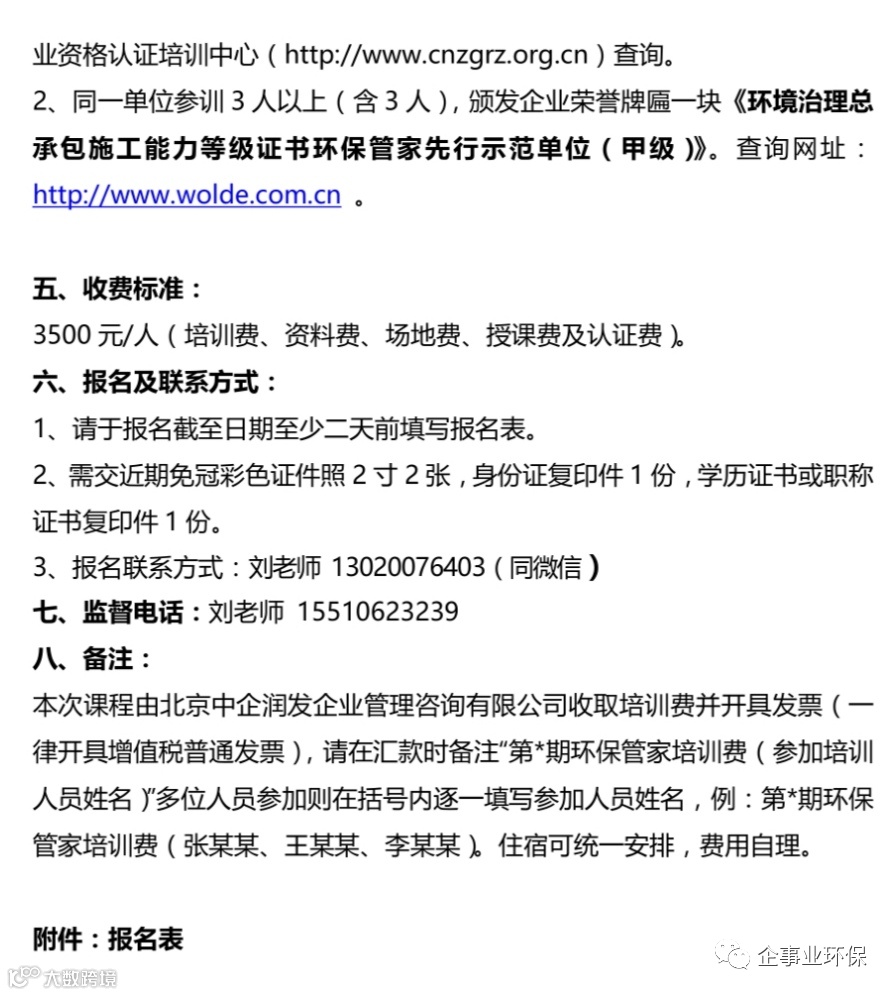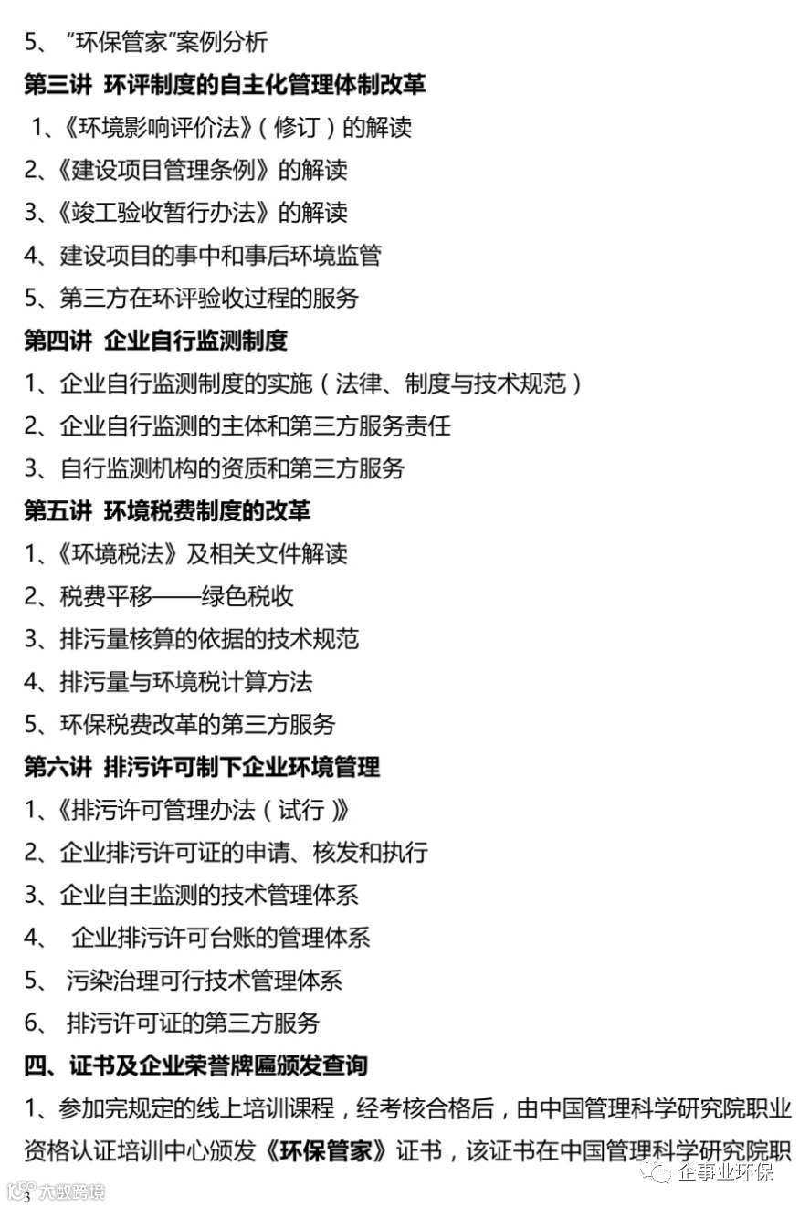 随着环评制度的改革,环评机构职能转变,向环境服务发展,大部分环评机构陆续开展环境服务即环保管家服务。生态环境部出台《关于积极发挥环境保护作用促进供给侧结构性改革的指导意见》提出:“鼓励有条件的工业园区聘请第三方专业环保服务公司作为“环保管家”。《关于推进环境污染第三方治理的实施意见》提出:“鼓励第三方治理单位提供包括环境污染问题诊断、污染治理方案编制、污染物排放监测、环境污染治理设施建设、运营及维护等活动在内的环境综合服务“,为第三方服务公司提供了新的发展机遇。为了提高环保管家的服务能力和水平,明确环保管家职责和服务内容、服务方式、服务模式,指导环保管家开展日常工作,提升服务质量和服务对象的满意度,中国管理科学研究院职业资格认证培训中心联合北京中企润发企业管理咨询有限公司特举办“生态环境综合服务暨环保管家精讲培训班”。