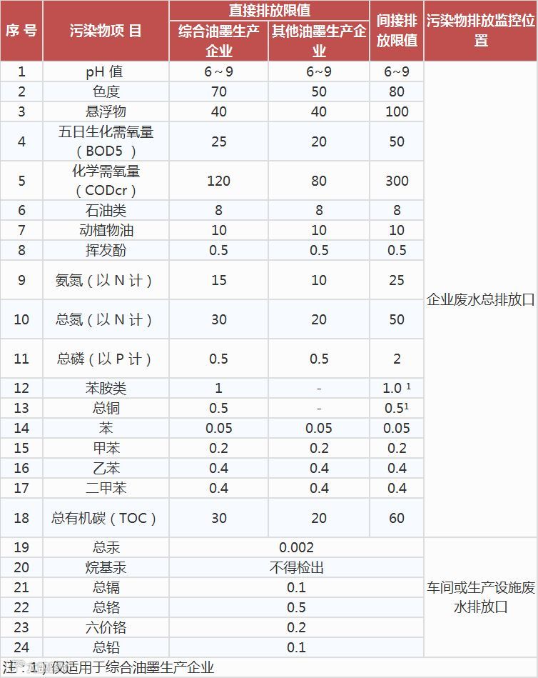 16、油墨工业水污染物排放标准- GB 25463-2010