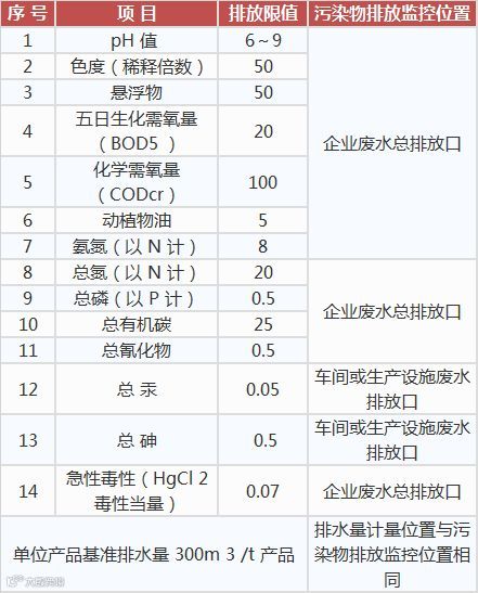 表1:新建企业自2014年3月1日起,执行该水污染物排放限值(单位:mg/L)
