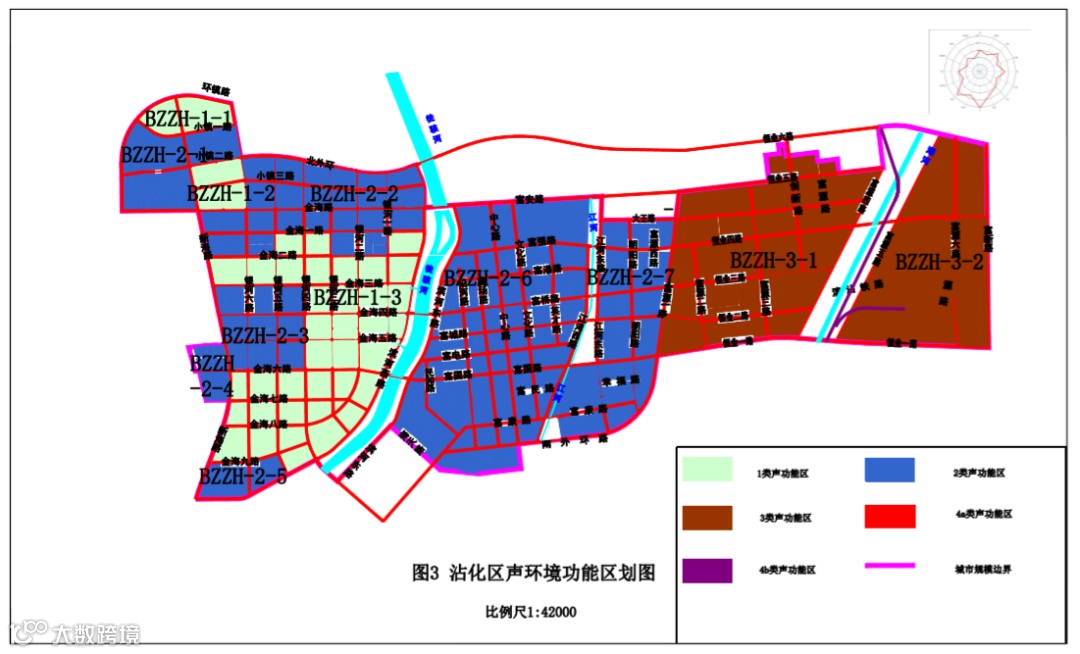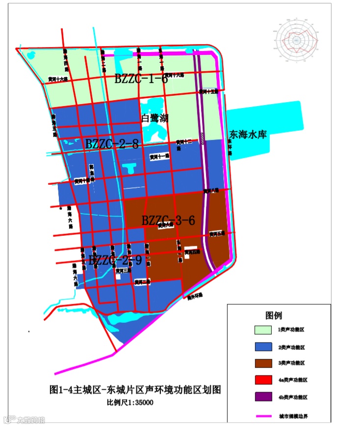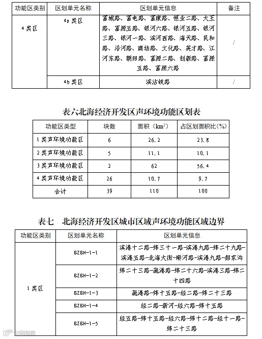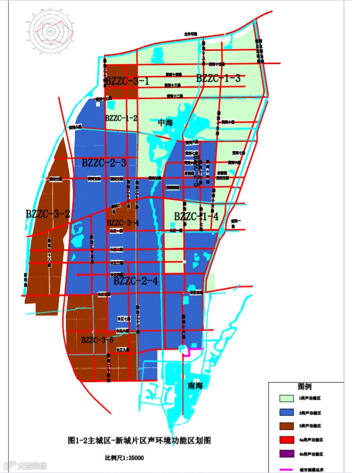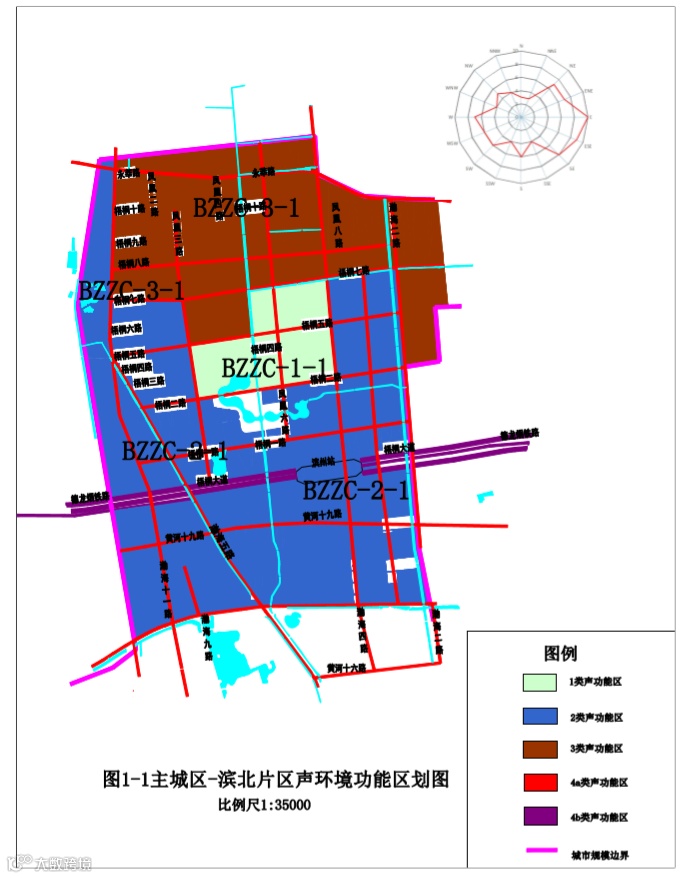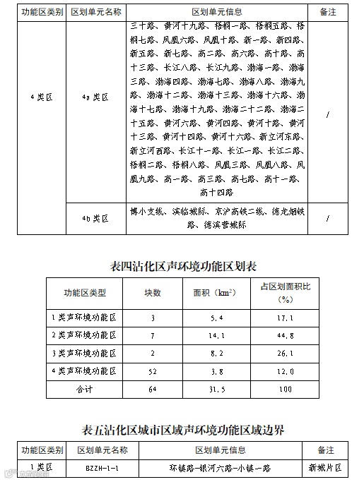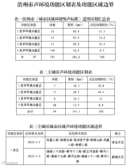 按照规定,声功能区划分外5类,其中0类声环境功能区是指康复疗养区等特别需要安静的区域;自然保护区核心区等珍稀动植物集中分布区。滨州市城市规划区内无符合0类声环境功能区条件的区域。1类声环境功能区是指以居民住宅、医疗卫生、文化教育、科研设计、行政办公为主要功能,需要保持安静的区域。2类声环境功能区是指以商业金融、集市贸易为主要功能,或者居住、商业、工业混杂,需要维护住宅安静的区域。3类声环境功能区是指以工业生产、仓储物流为主要功能,需要防止工业噪声对周围环境产生严重影响的区域。4类声环境功能区是指交通干线及特定路段两侧一定距离之内,需要防止交通噪声对周围环境产生严重影响的区域,包括4a类和4b类两种类型。高速公路、一级公路、二级公路、城市快速路、城市主干路、城市次干路、特定路段、城市轨道交通(地面段)、城际轨道交通(地面段)、内河航道两侧区域为4a类,铁路干线两侧区域为4b类。在不同的功能区执行不同的噪声排放标准。