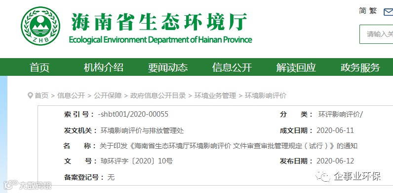 《海南省生态环境厅环境影响评价文件审查审批管理规定(试行)》已经厅务会议审议通过,现印发给你们,请认真贯彻执行。
