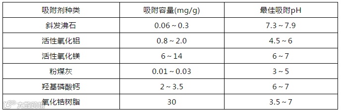 表1:常用氟吸附剂的吸附容量变化范围