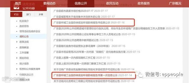 广宗县环城工业园总体规划环境影响报告书两次信息公示。来源:7月24日20时许,广宗县人民政府网站截图