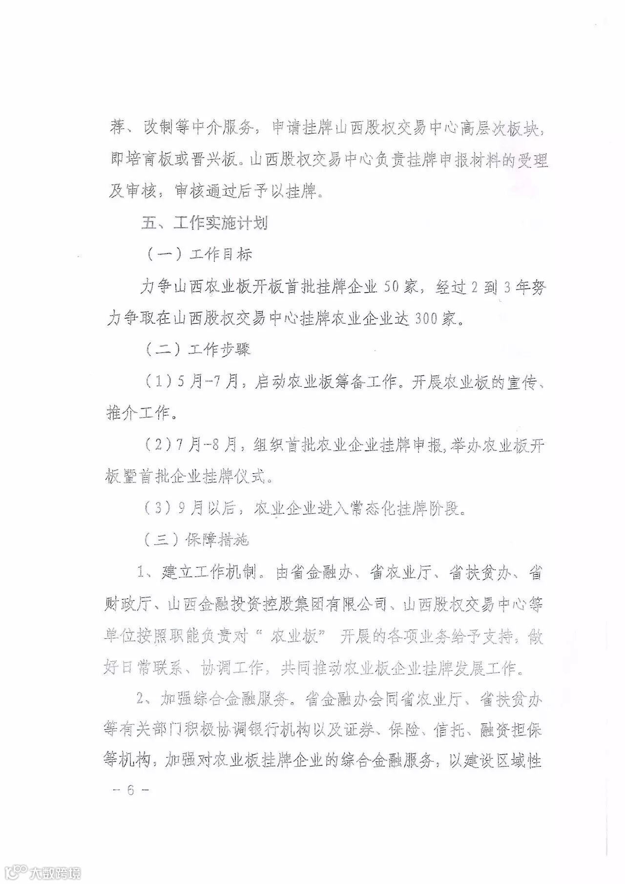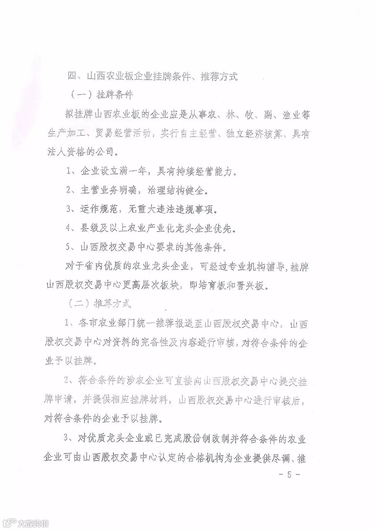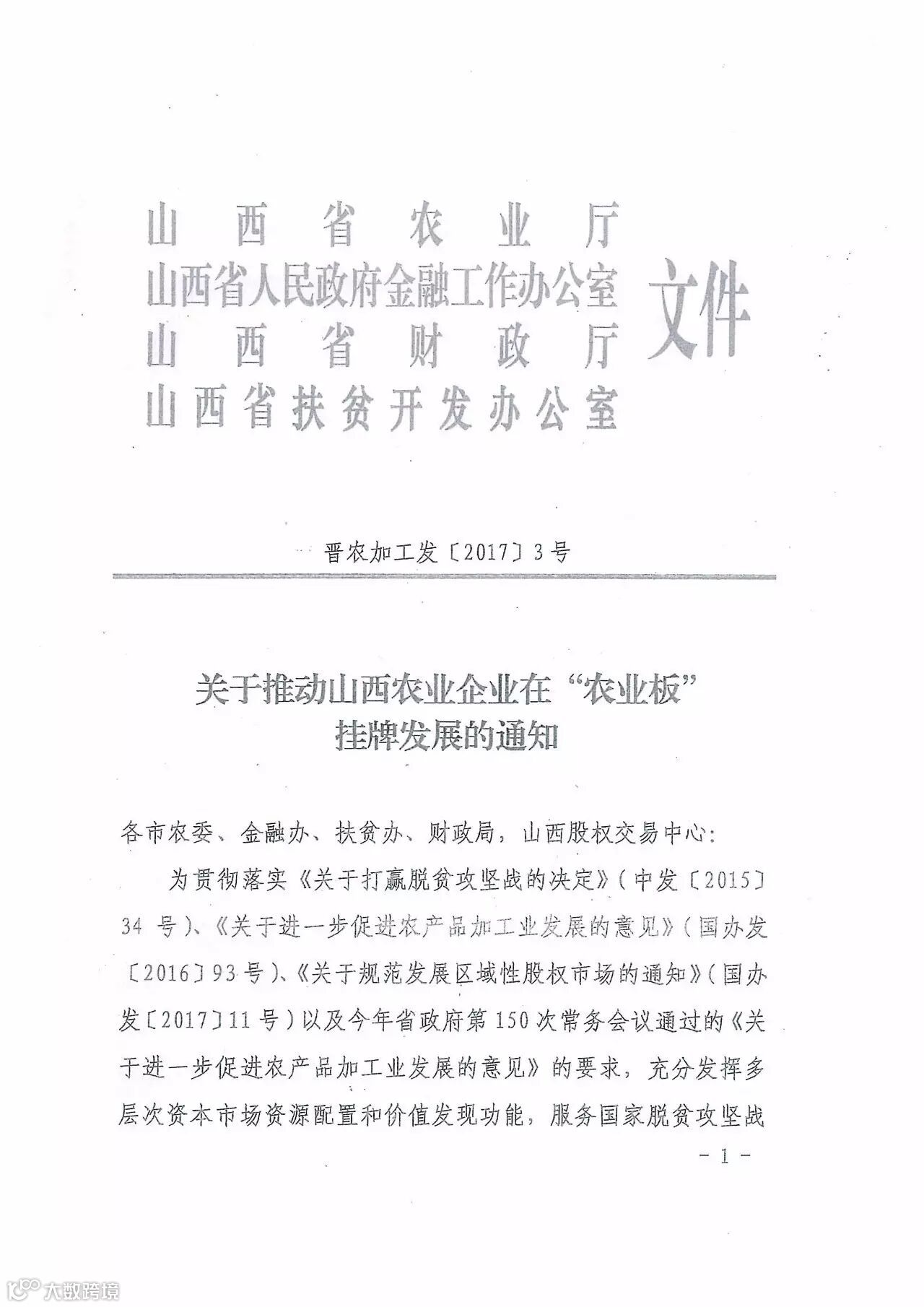 为深入贯彻落实国务院、省委省政府关于进一步促进农产品加工业发展,坚决打赢扶贫攻坚战的战略部署,引导我省农业企业规范发展,建立现代化企业制度,解决农业企业融资融智困境,推动我省农业企业供给侧结构性改革,为贫困县农业企业发展开辟绿色通道,山西股权交易中心决定推出“农业板”。
