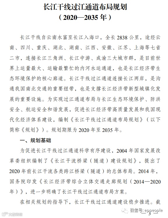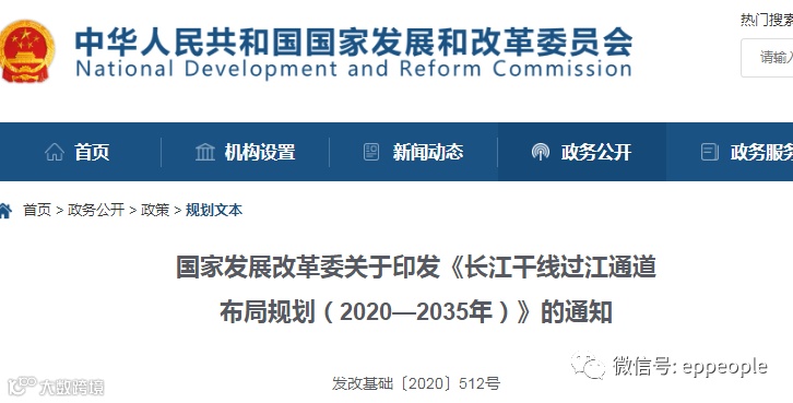 《长江干线过江通道布局规划(2020—2035年)》(以下简称《规划》)业经国务院批准,现印发给你们,请按照执行,并就有关事项通知如下: