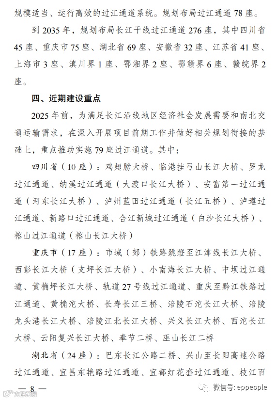 四、本《规划》主要布局横跨长江干线主要航道、具有交通功能的过江通道项目,对于连接洲岛与沿岸、洲岛之间的通道项目和不具备交通功能的跨江、沿江建筑物,由省级发展改革委统筹布局编制相关规划报送我委衔接后组织实施。