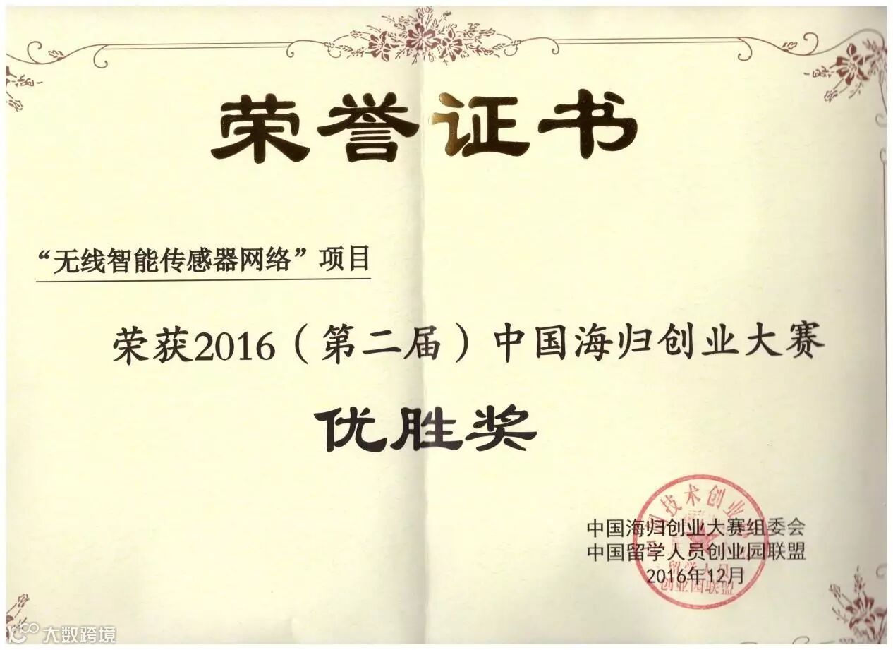 荣誉:2016年5月参加太原市科技局举办的太原市“创业杯”创新创业大赛获得“优胜奖”;8月公司参加第五届中国创新创业大赛,获得山西赛区二等奖;12月“无线智能传感器网络”项目获得2016(第二届)中国海归创业大赛的优胜奖。
