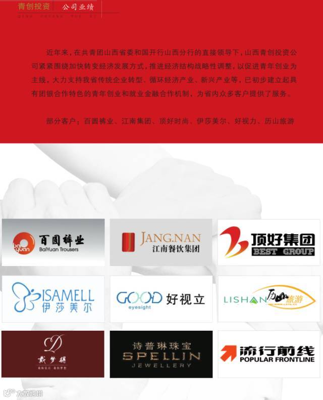 公司为国家开发银行山西省分行的融资统贷平台,同时也是青创客文华双创基地服务体系之一。