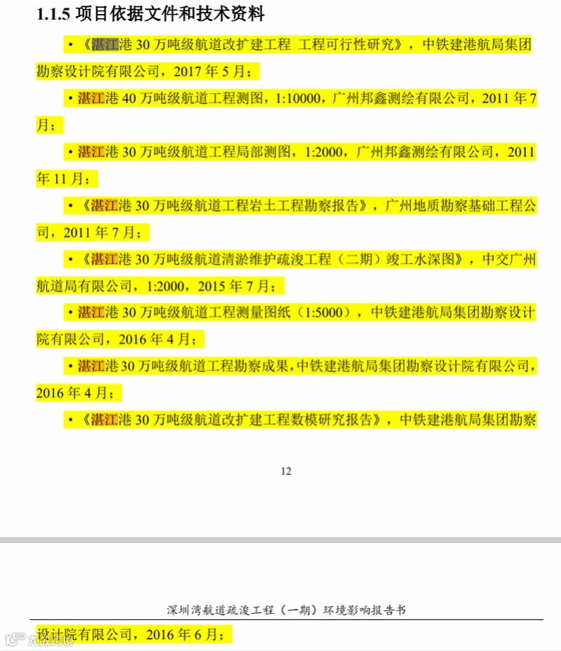 记者查阅该报告书原文件发现,多处提及“湛江”,其中包括“本项目不会对湛江湾现有红树林造成影响”、“深圳湾航道疏浚工程是落实湛江市国民经济和社会发展十三五规划的体现”等。在该项目的依据文件和技术资料中,记者发现,该报告借鉴了多个湛江港30万吨级航道工程相关报告。对于这样的错误,有深圳环保人士向记者评价称,“这是小学生级别的错误,太低级了,我们没有心情去针对”。就相关质疑,记者于27日下午致电该环评报告评价单位中国科学院南海海洋研究所,该所称不接受媒体采访。