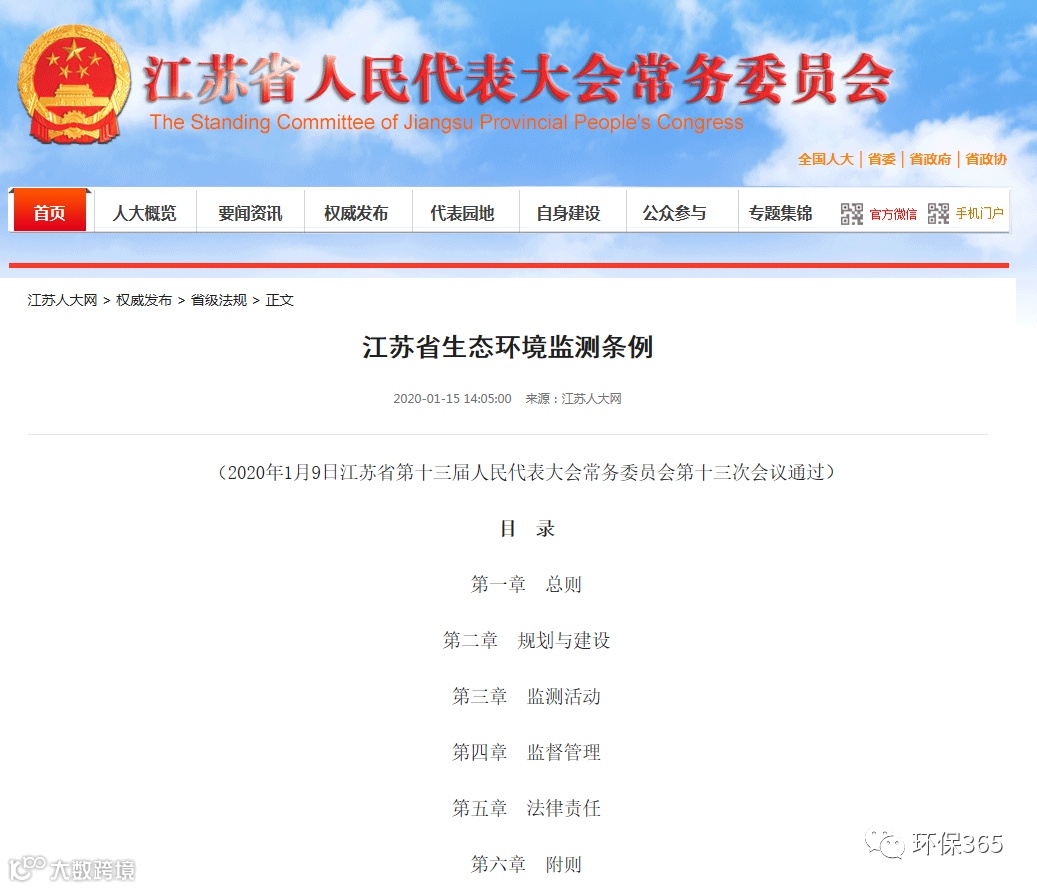 2、《江苏省生态环境监测条例》于2020年5月1日正式实施,文件下载地址: