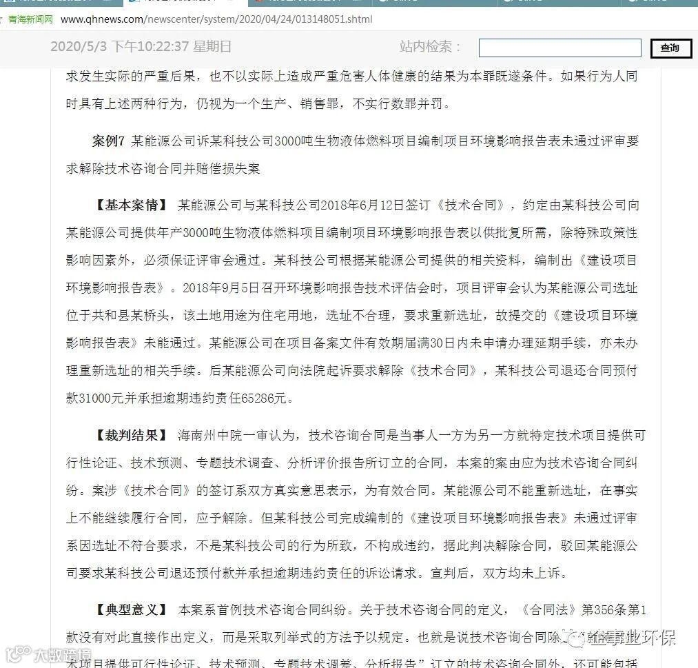 案例7 某能源公司诉某科技公司3000吨生物液体燃料项目编制项目环境影响报告表未通过评审要求解除技术咨询合同并赔偿损失案