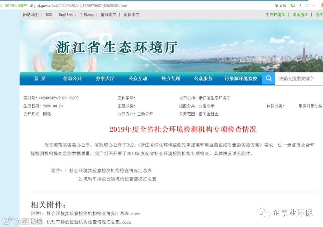 为贯彻落实省委办公厅、省政府办公厅印发的《浙江省深化环境监测改革提高环境监测数据质量的实施方案》要求,进一步督促社会环境检测机构提高监测数据质量,我厅组织开展了2019年度全省社会环境检测机构专项检查。具体情况详见附件。
