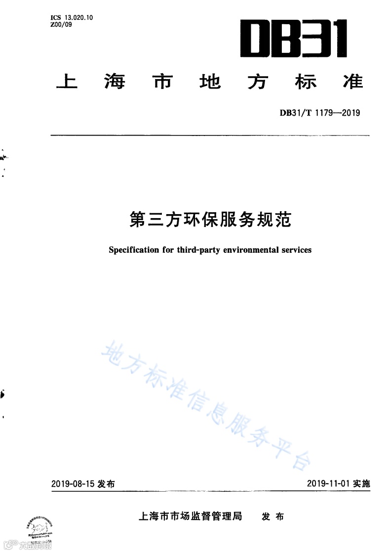 由市生态环境局组织编制的上海市地方标准《第三方环保服务规范》(DB31/T 1179-2019,以下简称“《规范》”)于近日通过国家备案并出版发行。《规范》由市市场监督管理局于2019年8月15日发布,于2019年11月1日起实施,成为全国首部第三方环保服务领域的地方标准,旨在为第三方环保服务市场的健康有序发展提供技术支撑。