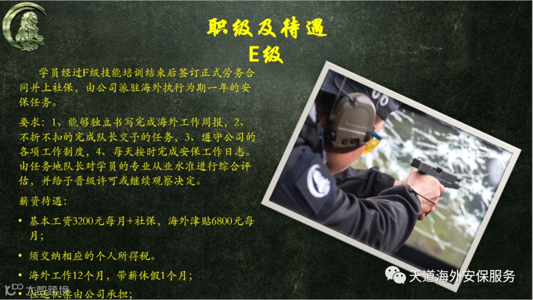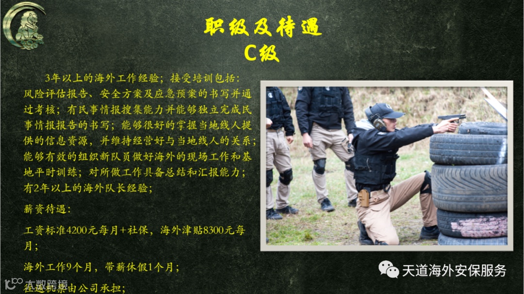 导读:天道海外安保服务公司现就公司发展需要进行人才招聘,有意向者请仔细浏览下方介绍,根据个人情况酌情报名联系。