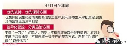 在优先支持、优先保障方面,方案明确,优先保障民生和疫情防控领域复工生产,将涉及重大民生、疫情防控重点物资生产企业、医疗卫生建设项目等,列入生态环境监管正面清单和监督执法正面清单,全力予以服务保障。优化环境准入审批流程,对民生类、社会事业与服务业等10大类30小类行业项目,实行豁免审批;对畜牧业、农副食品加工业、食品制造业等17大类44小类行业,实行环评告知承诺制审批。完善环境监管正面清单制度,动态更新环境监管正面清单,对纳入正面清单的项目和企业,切实做到有需要有服务,无需要不打扰。