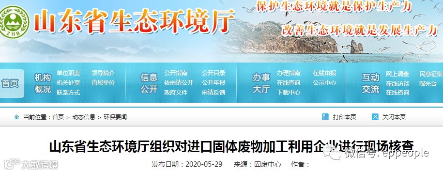 山东省生态环境厅组织对进口固体废物加工利用企业进行现场核查