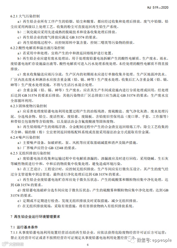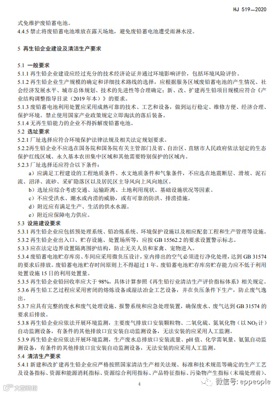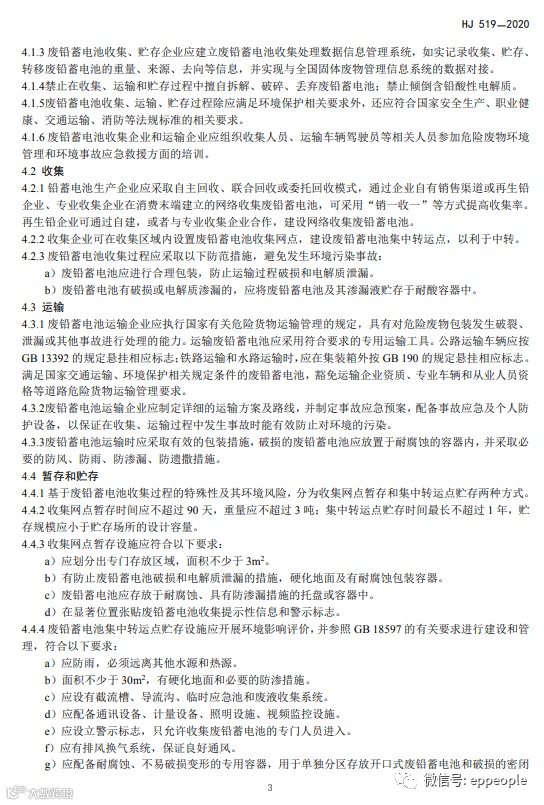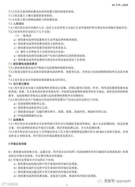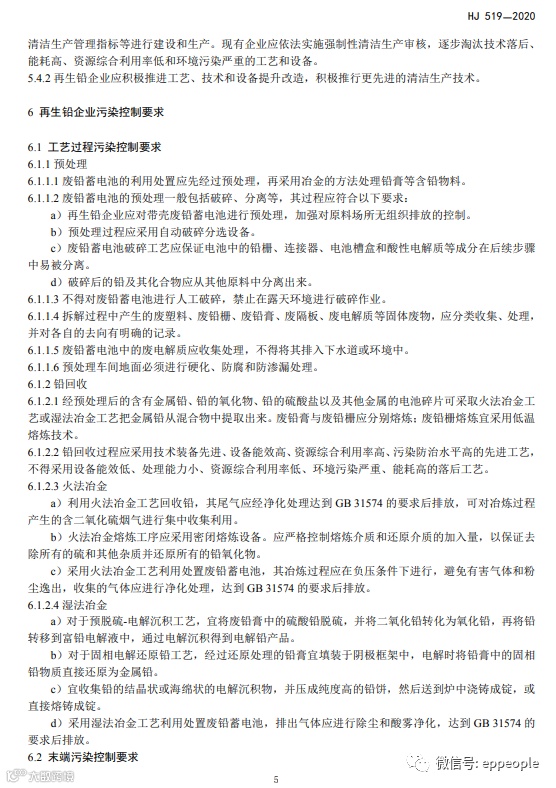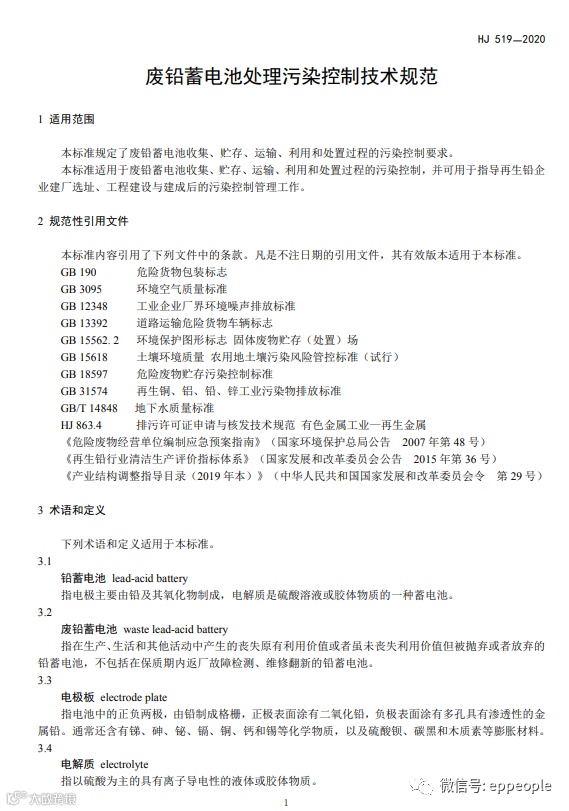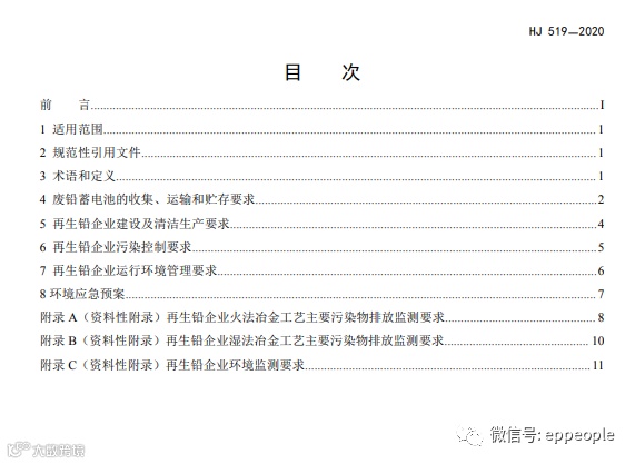 废铅蓄电池处理污染控制技术规范(HJ 519-2020 代替 HJ 519-2009)