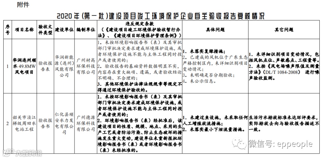 为强化建设项目环境保护事中事后监督管理,打击建设项目竣工环境保护企业自主验收过程弄虚作假等违法行为,协同推进生态环境高质量保护,根据《建设项目环境保护管理条例》、《建设项目竣工环境保护验收暂行办法》(国环规环评〔2017〕4号)等相关规定,我厅委托省环境技术中心2020年第一季度组织对广州、深圳、韶关、惠州、东莞、清远等6个地市的16份建设项目竣工环境保护验收报告书(表)进行了复核,现将发现的问题予以通报(见附件)。各相关地市要对复核发现的问题进一步调查核实并依法处理,于2020年6月30日前将调查处理情况报送我厅(执法处)。
