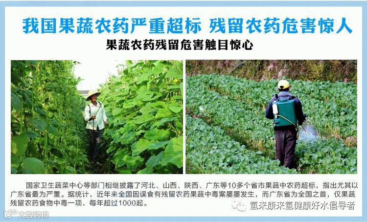 世界卫生组织近期的统计结果是:全世界的消费者普遍存在被农药毒害的隐患。当前农药残留主要来源一是食物本身携带,另一个就是被农药残留污染的水资源,水中农残留危害一样严重。