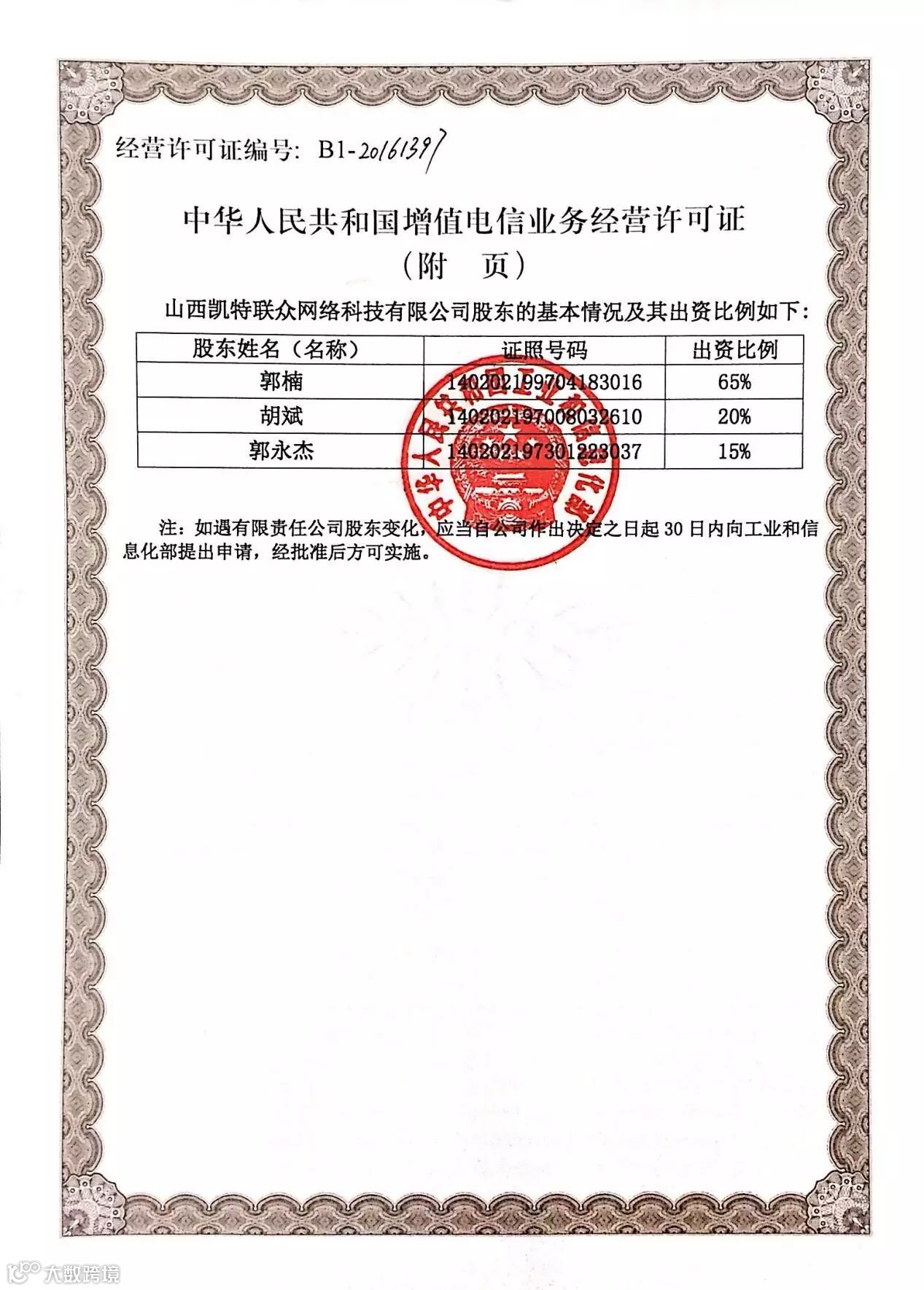 中华人民共和国增值电信业务经营许可证(ISP资质)