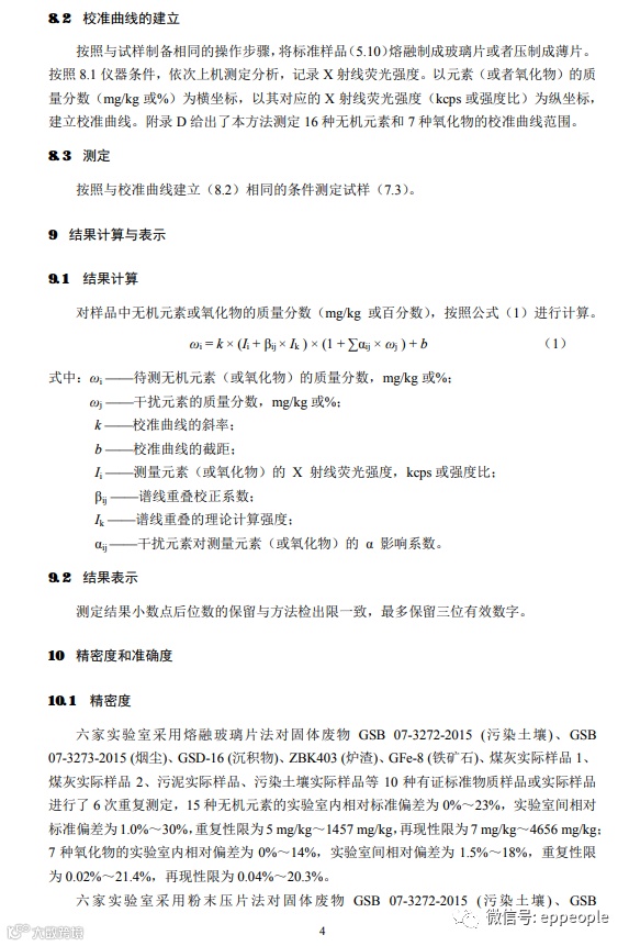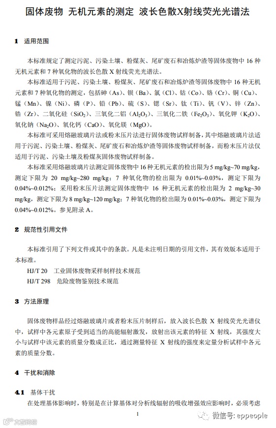 4.固体废物 无机元素的测定 波长色散X射线荧光光谱法(征求意见稿)