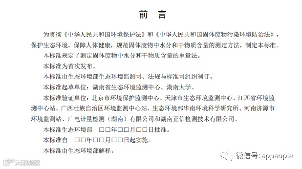 生态环境部发布关于征求《固体废物 水分和干物质含量的测定 重量法(征求意见稿)》等两项国家环境保护标准意见的函,详情如下: