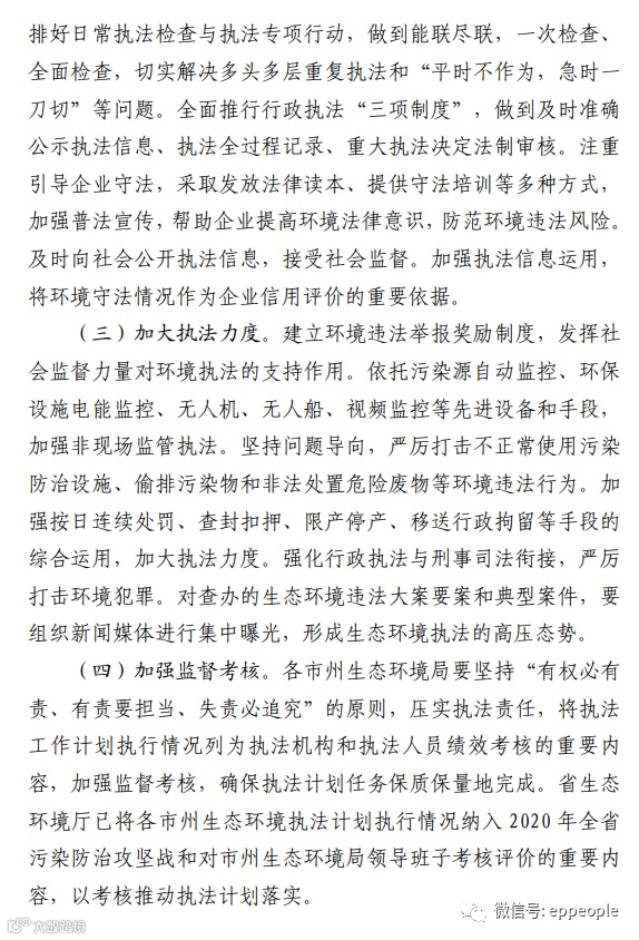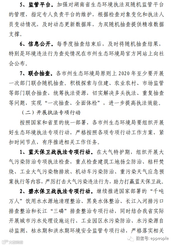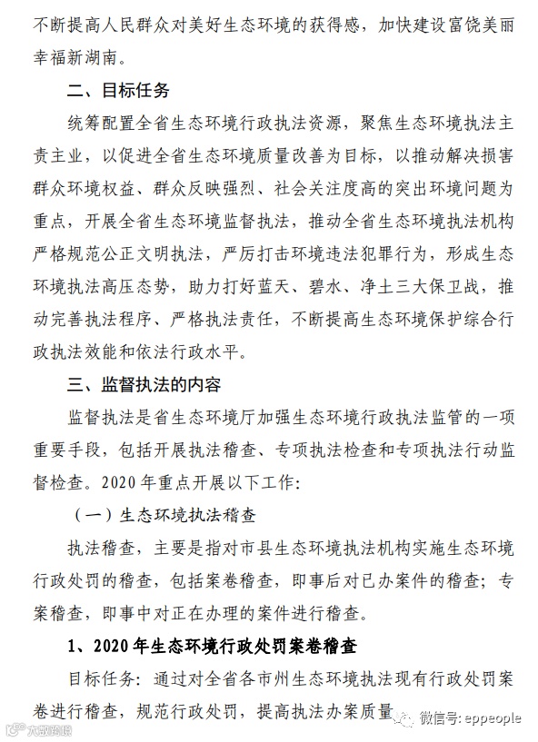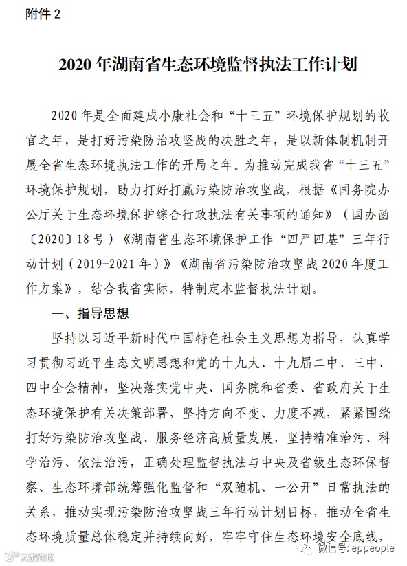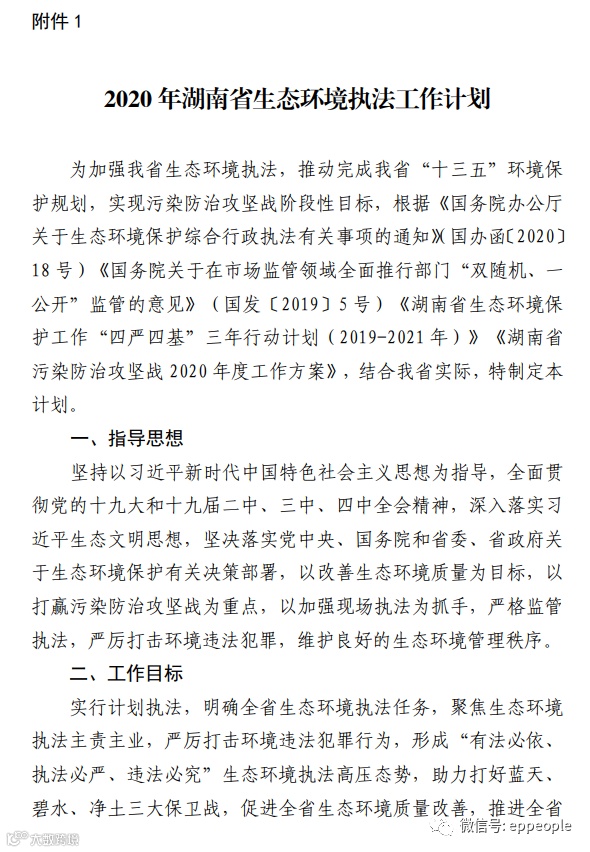 现将《2020年湖南省生态环境执法工作计划》《2020年湖南省生态环境监督执法工作计划》印发给你们,请严格落实生态环境执法主体责任,结合实际认真抓好贯彻执行。