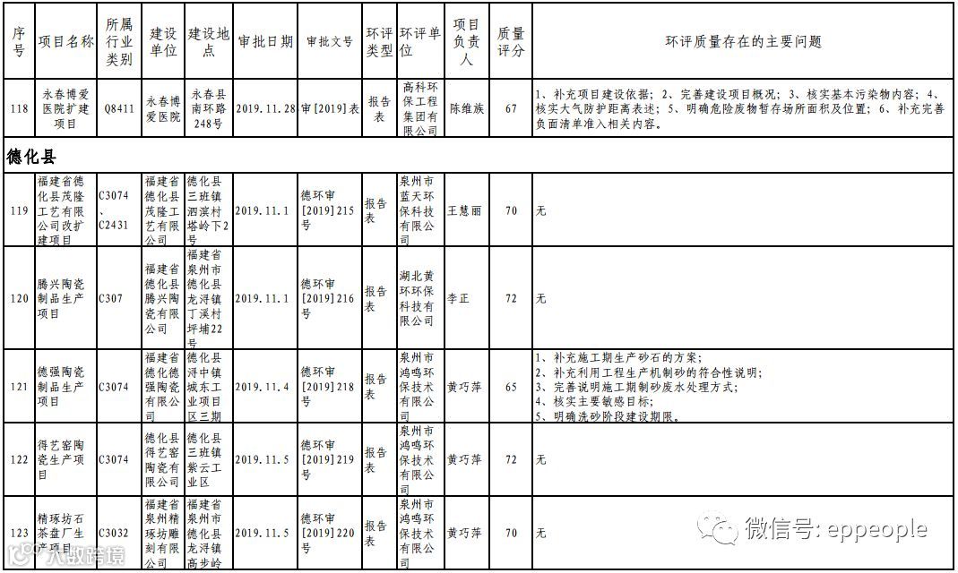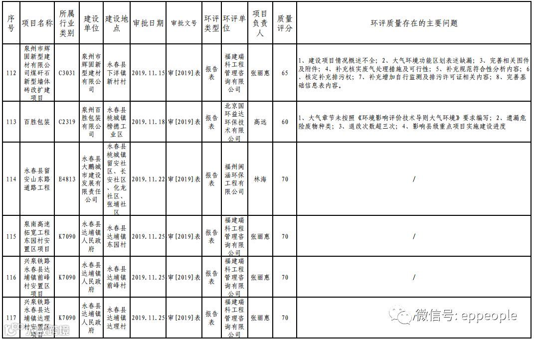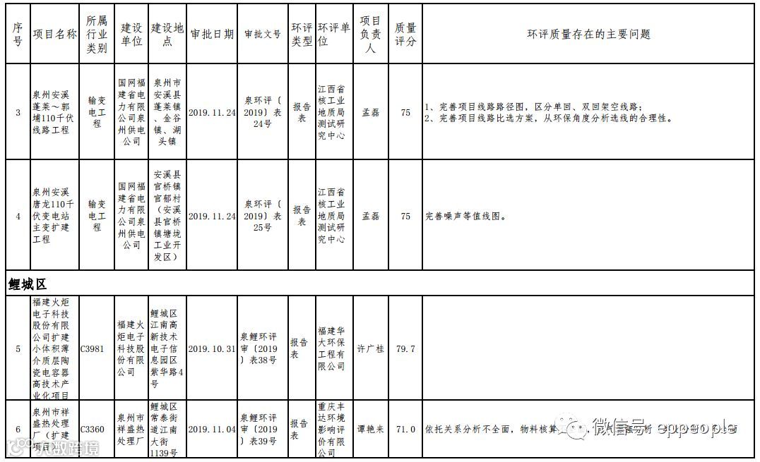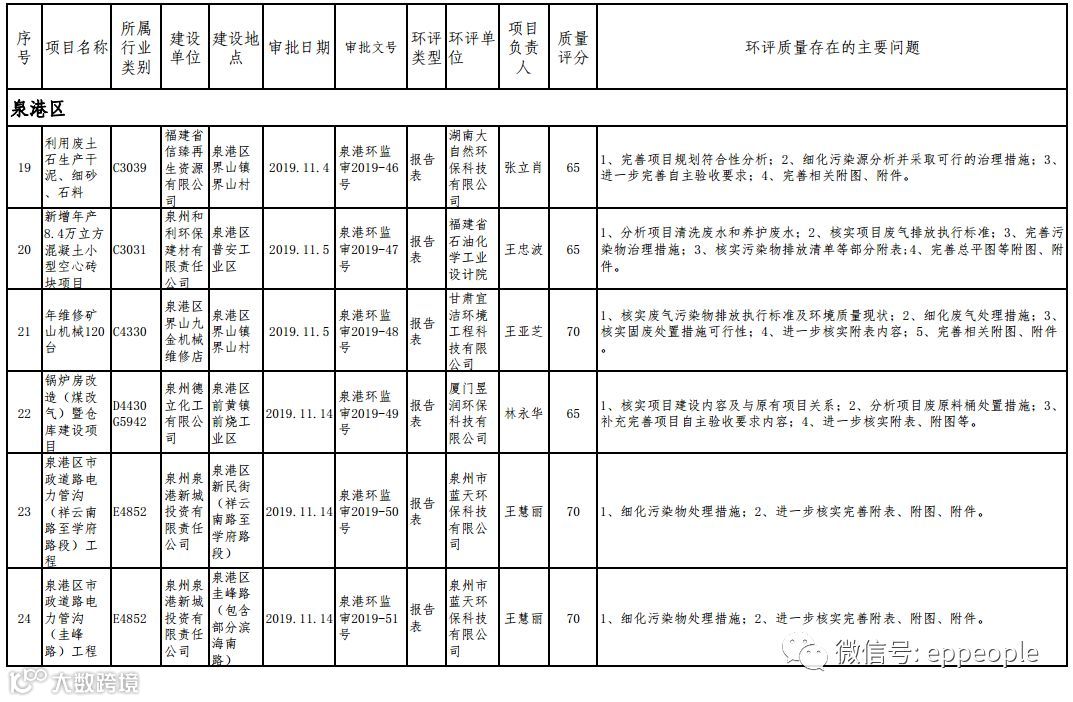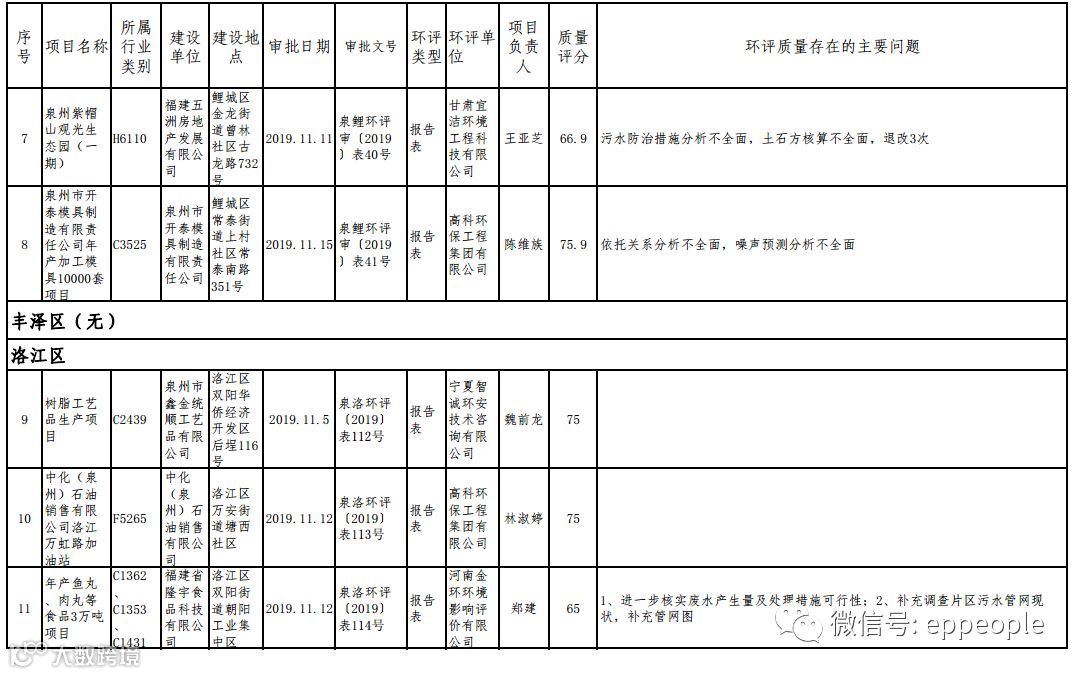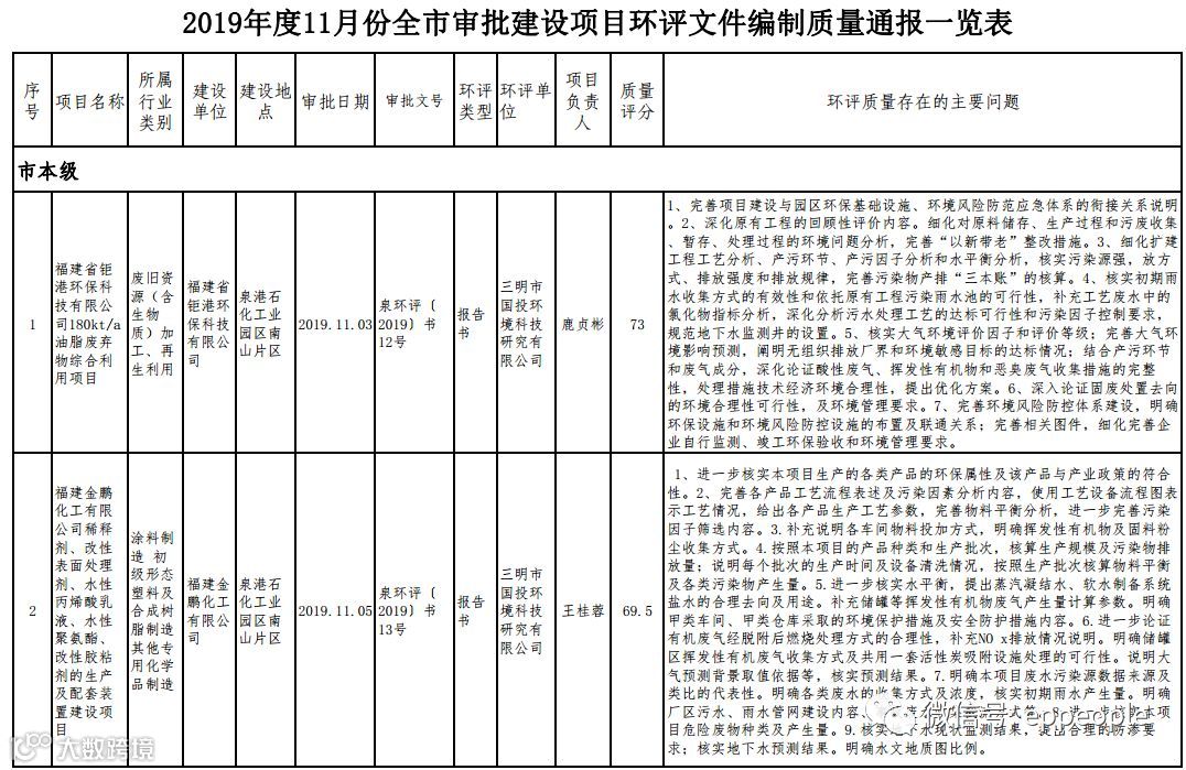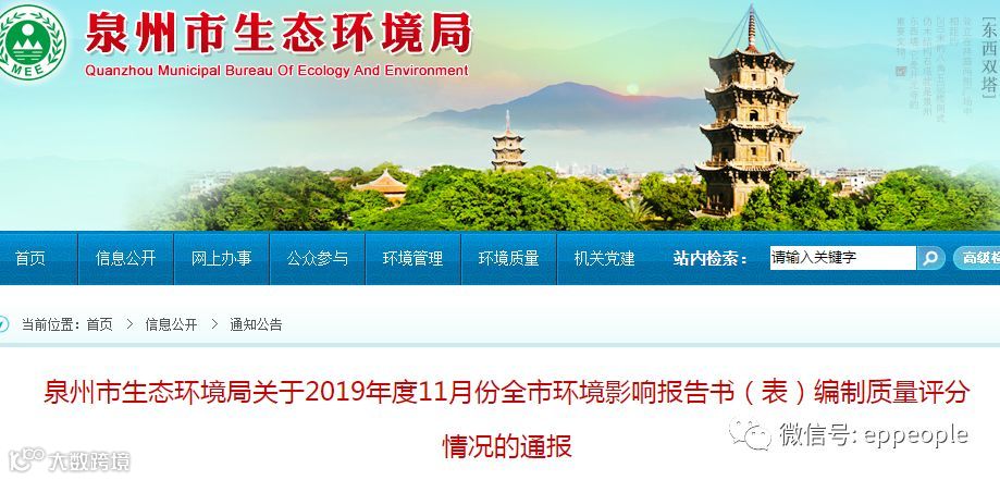 泉州市生态环境局关于2019年度11月份全市环境影响报告书(表)编制质量评分情况的通报