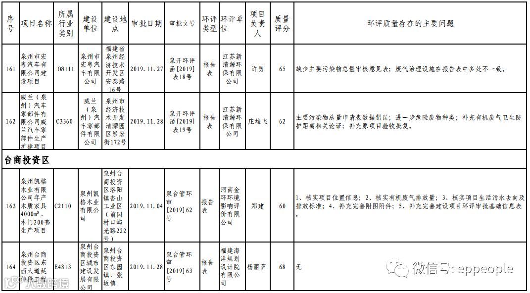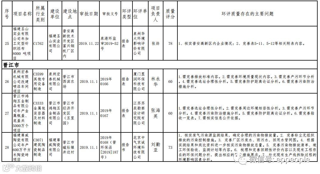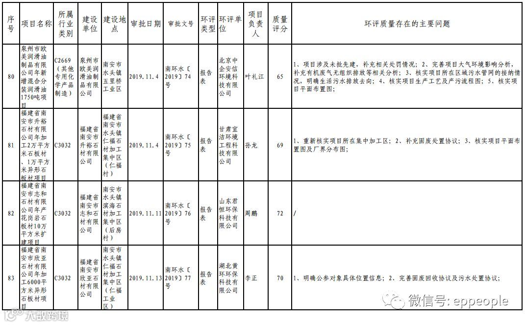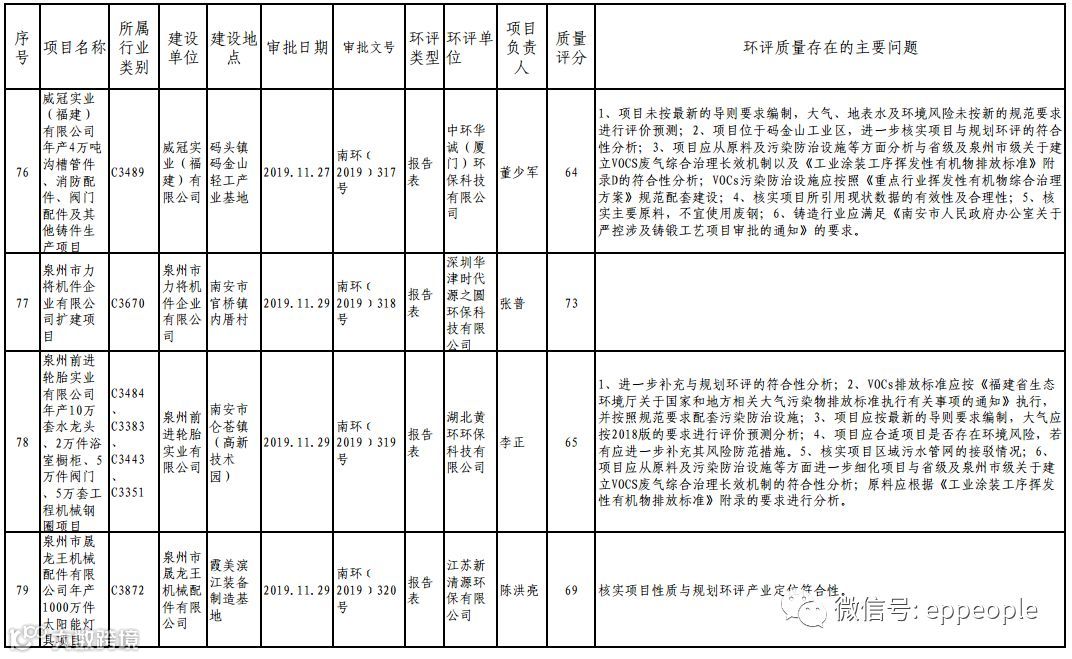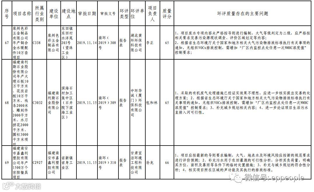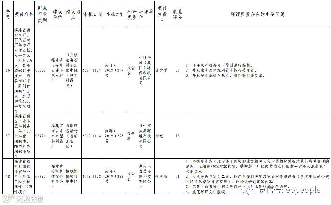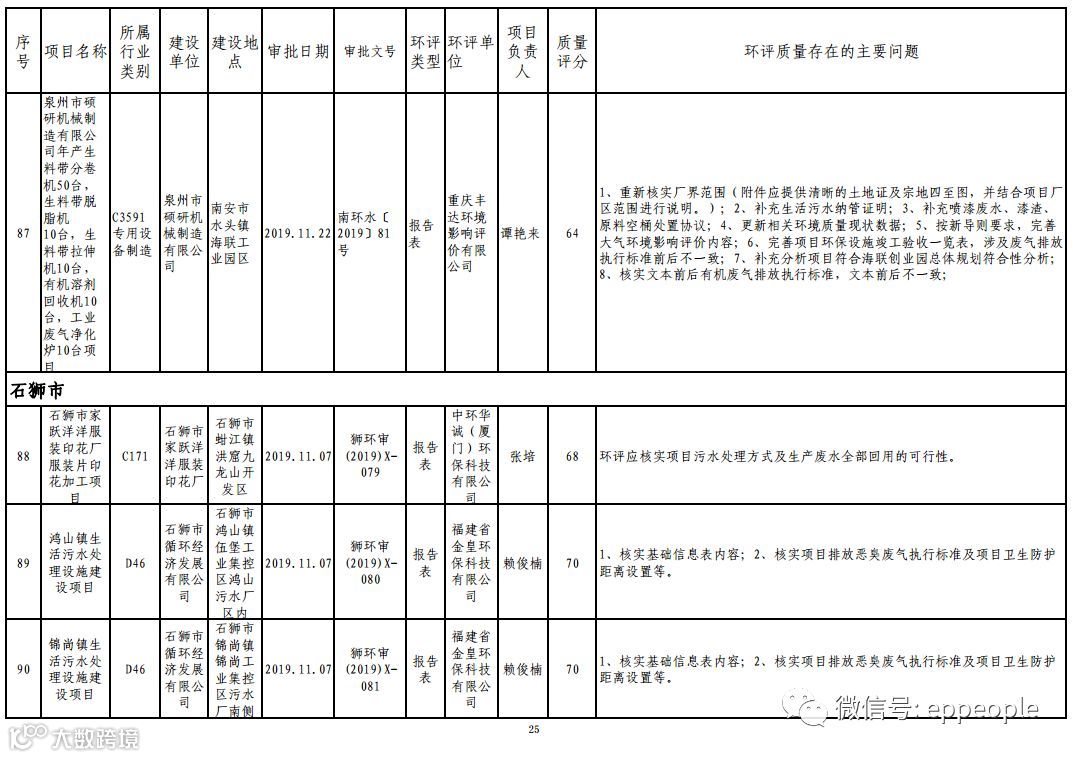 泉州市生态环境局关于2019年度11月份全市环境影响报告书(表)编制质量评分情况的通报
