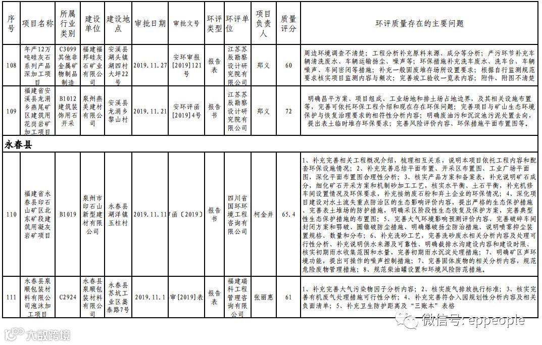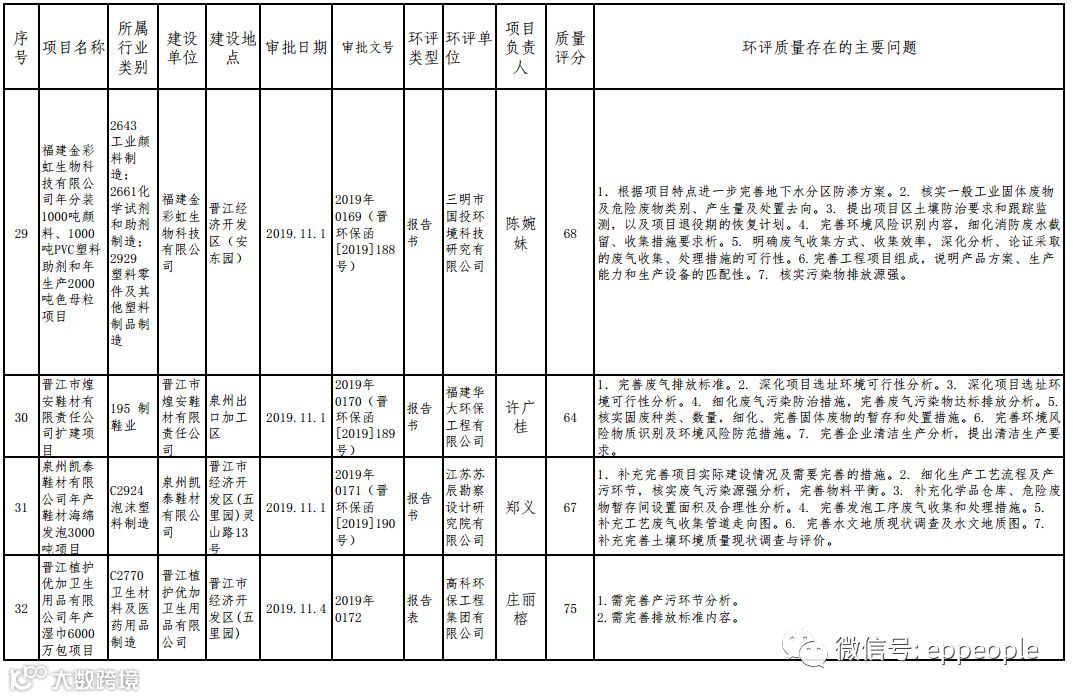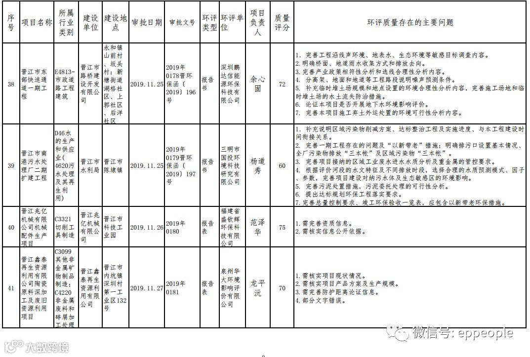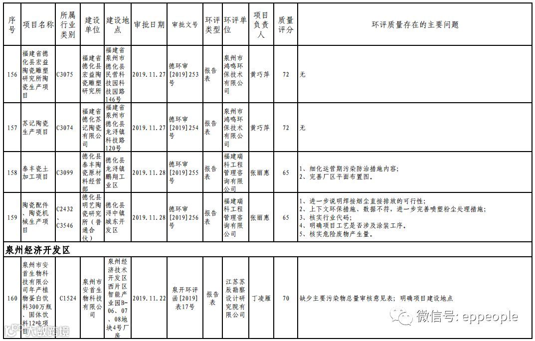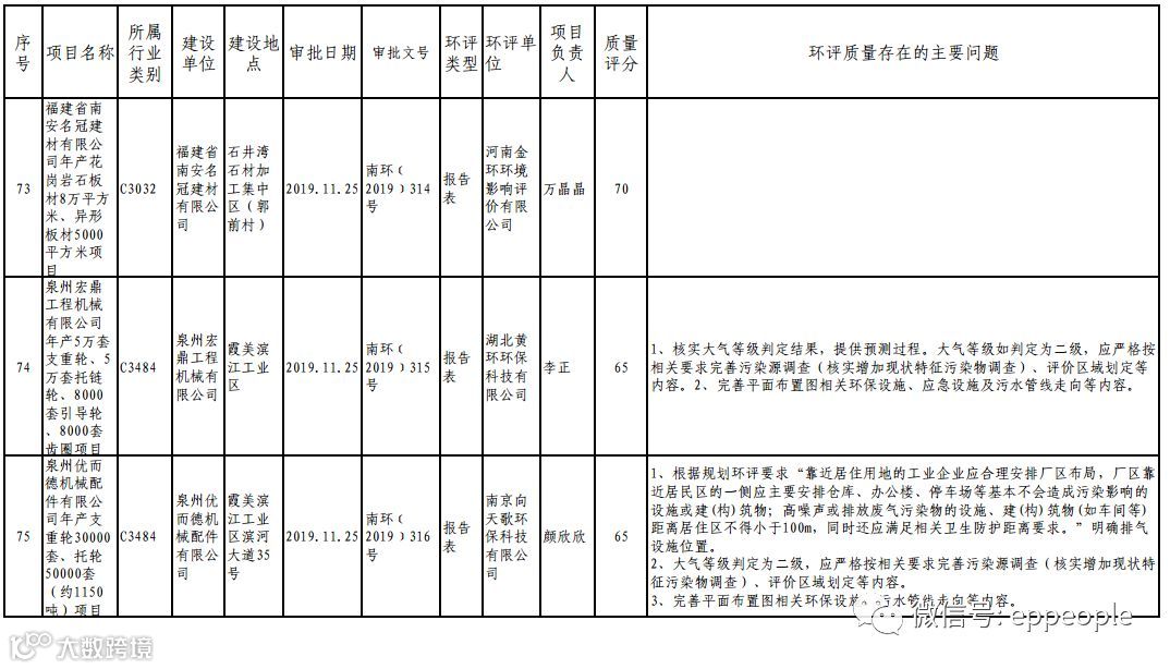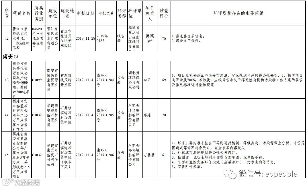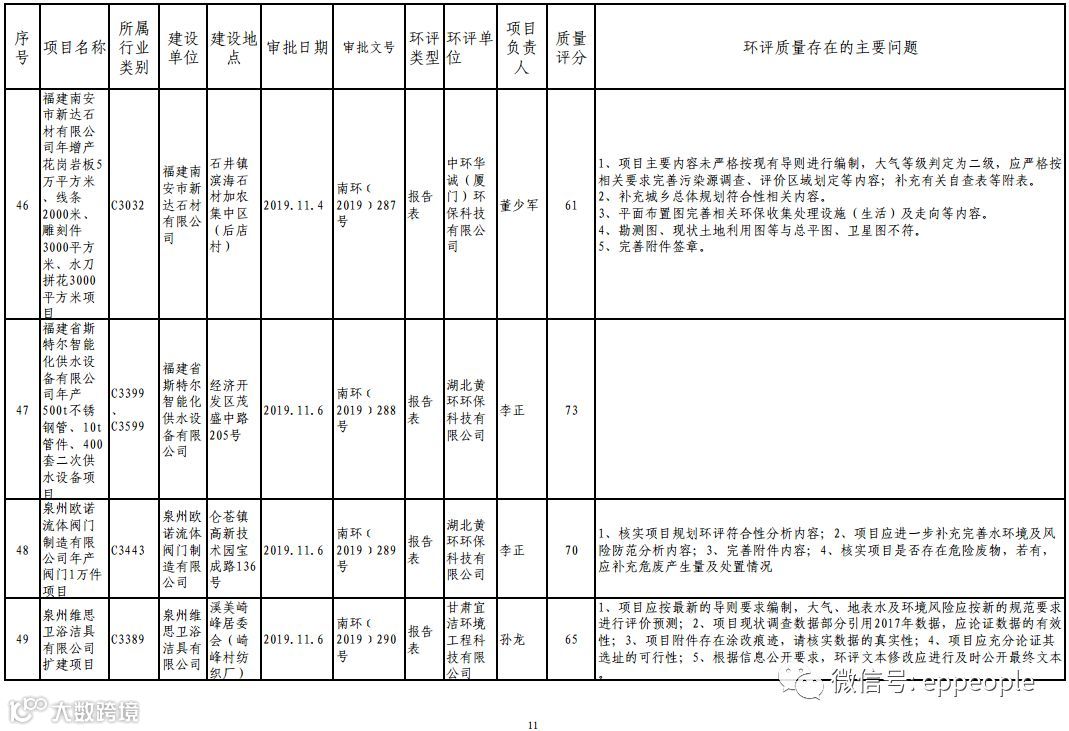 泉州市生态环境局关于2019年度11月份全市环境影响报告书(表)编制质量评分情况的通报
