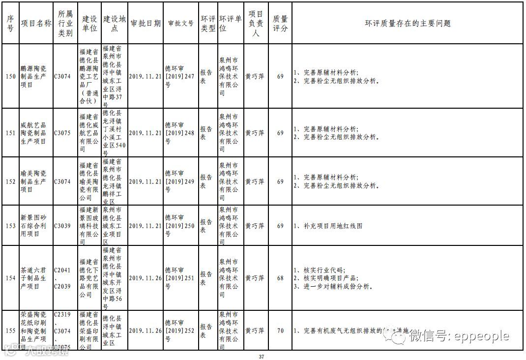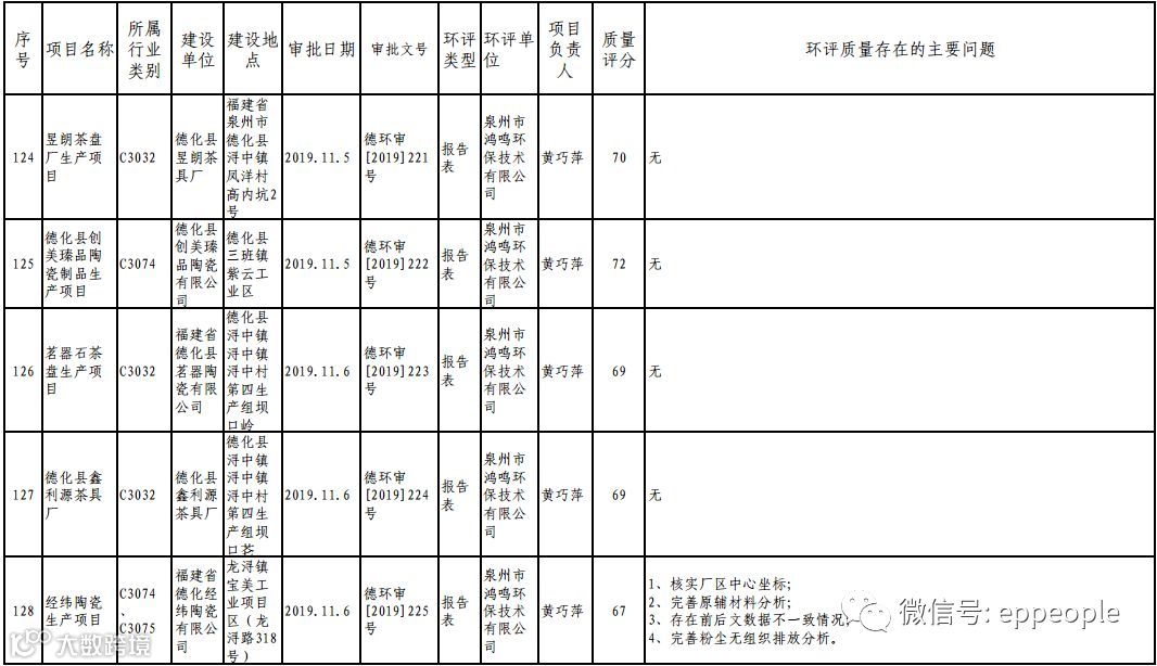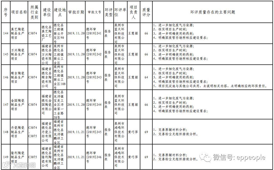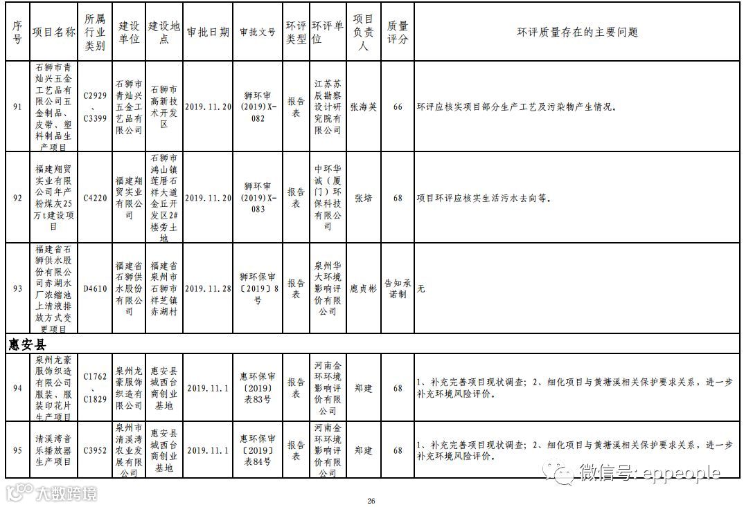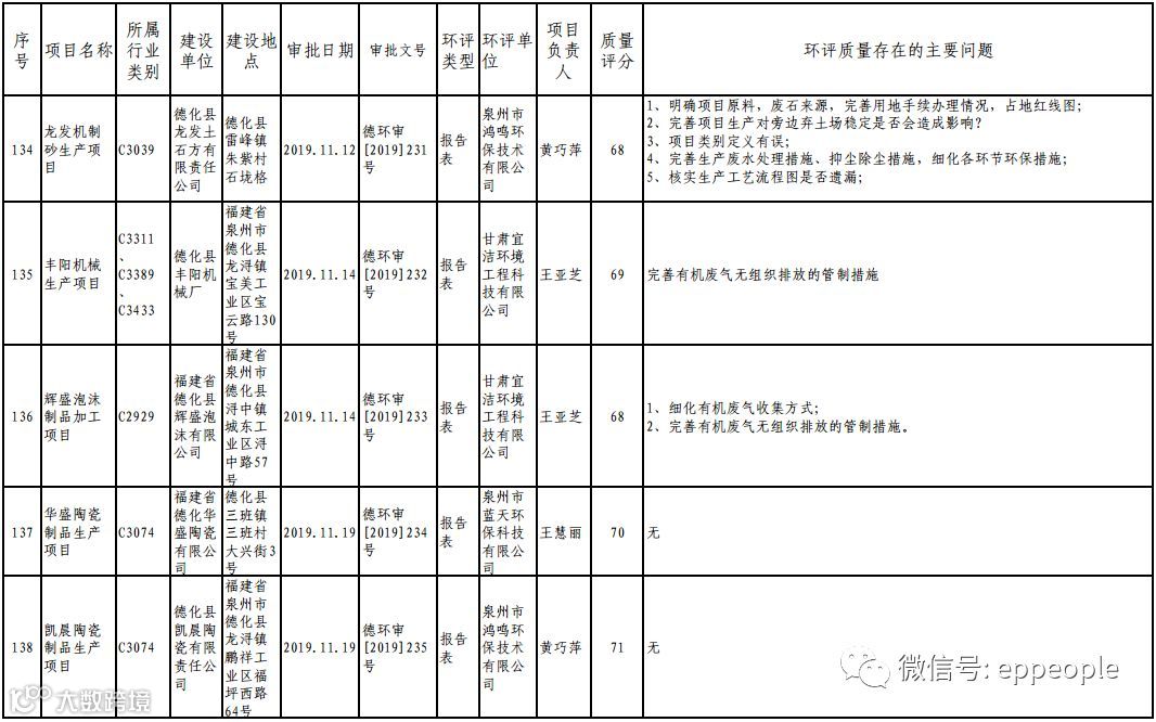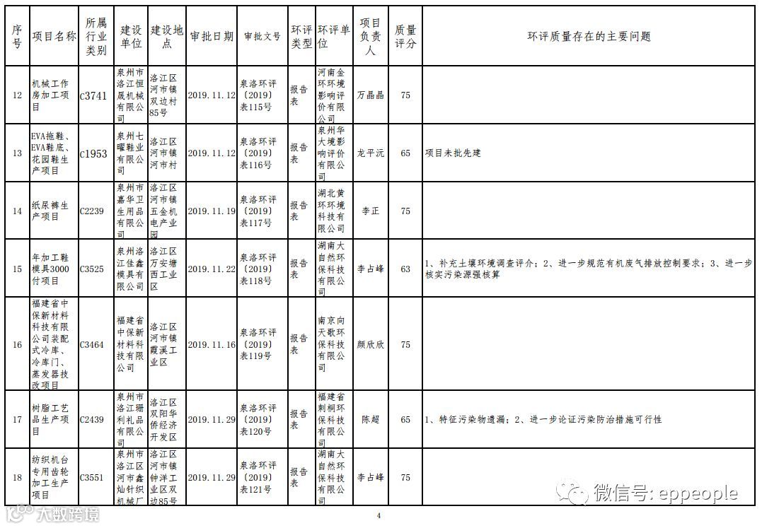 泉州市生态环境局关于2019年度11月份全市环境影响报告书(表)编制质量评分情况的通报