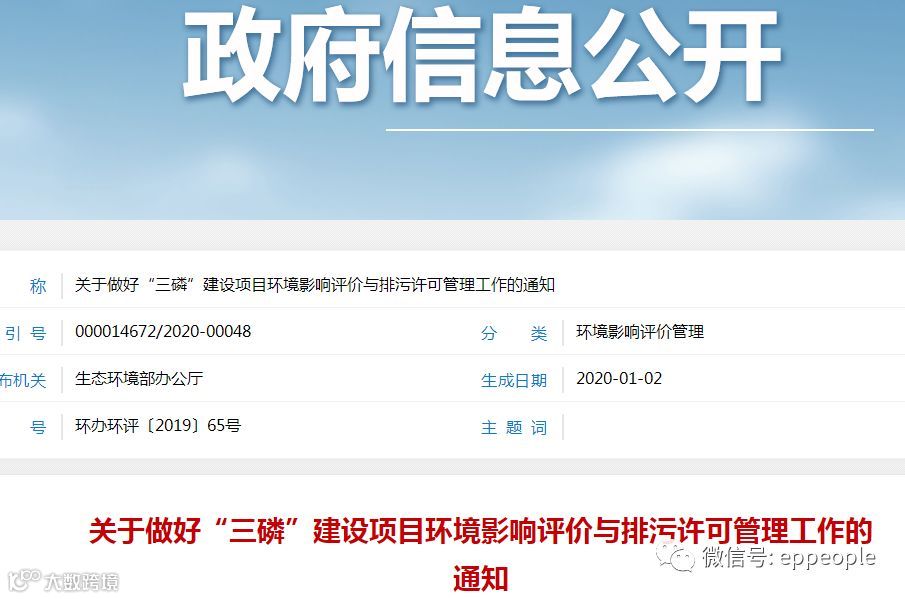 (八)强化信息公开,建立共享机制。地方生态环境部门应按照信息公开相关要求,主动公开项目环评文件受理情况、拟作出的审批意见和审批决定,并在全国排污许可证管理信息平台及时公布“三磷”企业排污许可证发放情况,保障公众环境保护知情权、参与权和监督权。