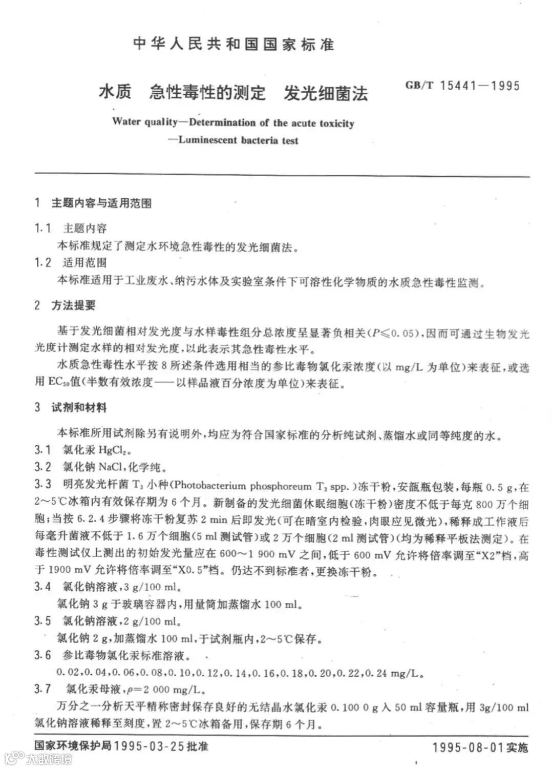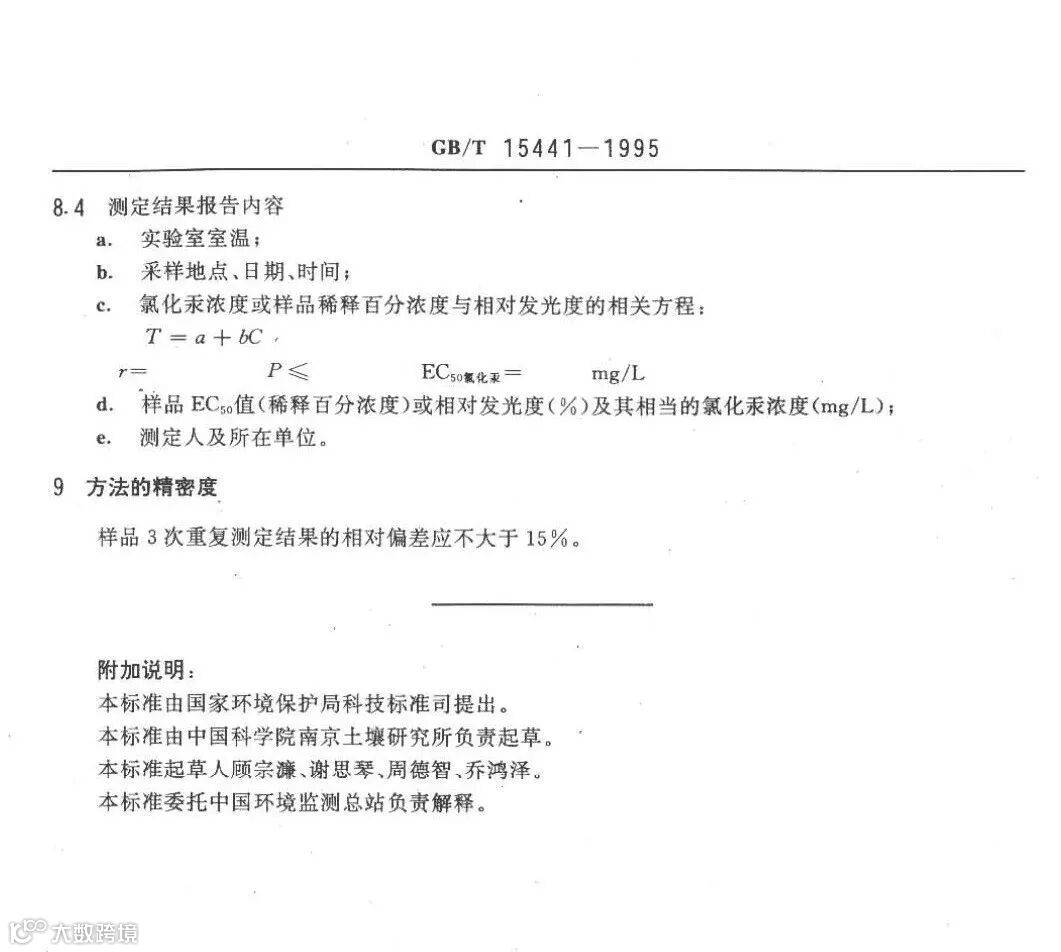 附 《水质 急性毒性的测定 发光细菌法》(GB/T 15441-1995)