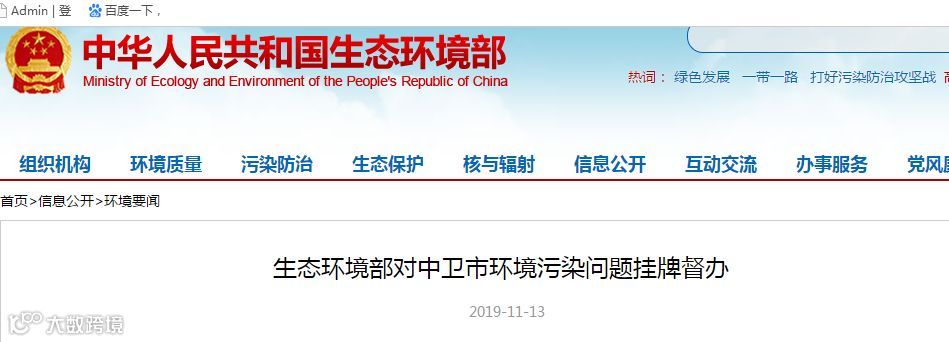 近日,有媒体报道宁夏回族自治区中卫市“腾格里沙漠边缘再现大面积污染物”。生态环境部高度重视,派工作组连夜赶赴现场。经初步核查,媒体反映的美利林区受污染问题属实。11月13日,生态环境部决定对中卫市环境污染问题公开挂牌督办。