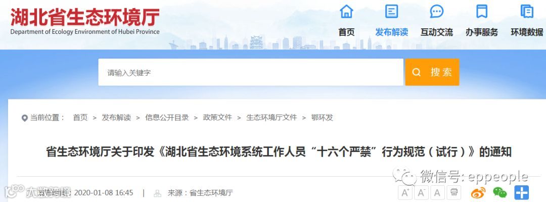 《湖北省生态环境系统工作人员“十六个严禁”行为规范