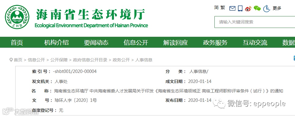 海南省生态环境厅中共海南省委人才发展局关于印发《海南省生态环境领域正高级工程师职称评审条件(试行)》的通知