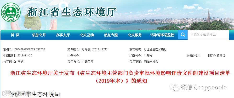 浙江省生态环境厅关于发布《省生态环境主管部门负责审批环境影响评价文件的建设项目清单(2019年本)》的通知